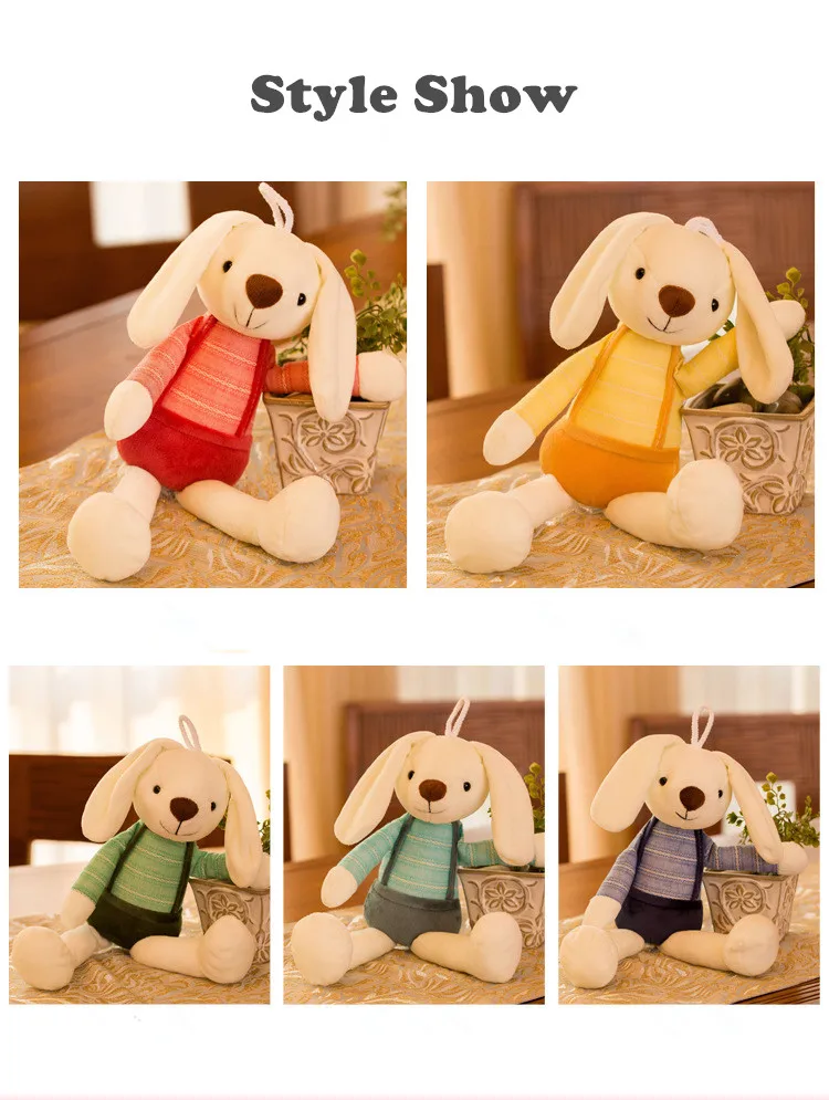 Спецификация: 1. Наполнитель: высококачественный хлопок 2. Цвет: как показано на фотографии 3. Высота: 40 см (включая длину ушей и ног) Примечание: 1. Пожалуйста, учитывайте небольшие различия в размерах из-за ручного измерения и убедитесь, что вы не возражаете перед заказом, спасибо! 2. Пожалуйста, поймите, что цвета могут быть немного хроматической аберрации, так как различное разрешение мониторов и светильник с яркостью и т. д. спасибо!