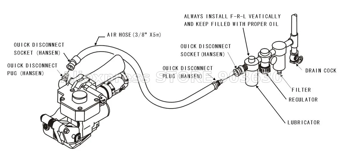 Давление воздуха: 0,5-0.8Mpa (72-100PSI)