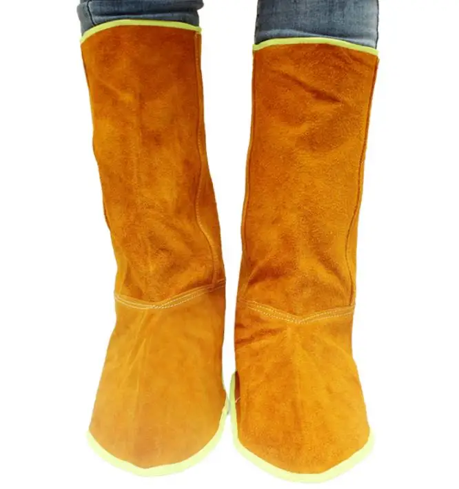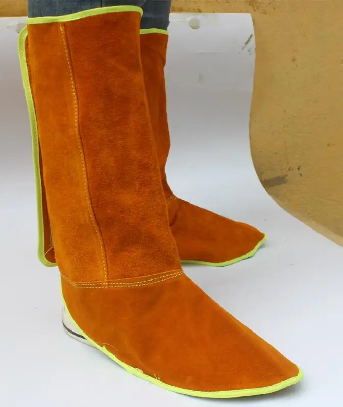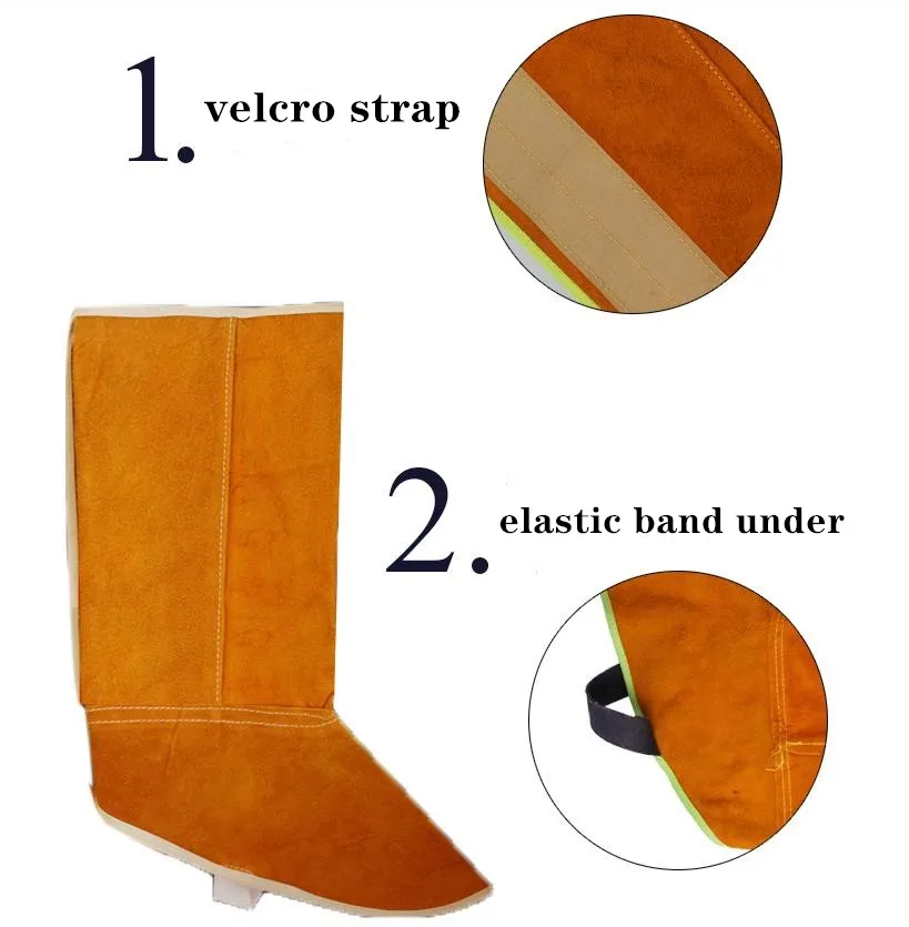 Сварка безопасности ног защита коровьей кожи огнеупорный теплоизолированный износостойкий с эластичной лентой