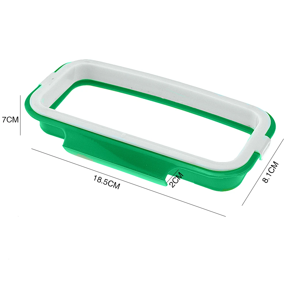 Конструкция компрессионного кольца, фиксированные мешки для мусора, висящие в дверях шкафа, ящике и т. д. Дизайн с пряжкой для карт, не легко упасть Дверь шкафа подходит для толщины менее 2 см Цвет: зеленый, Материал: полипропилен Размер: 18,5*8,1*2,7 см Количество: 1 шт.