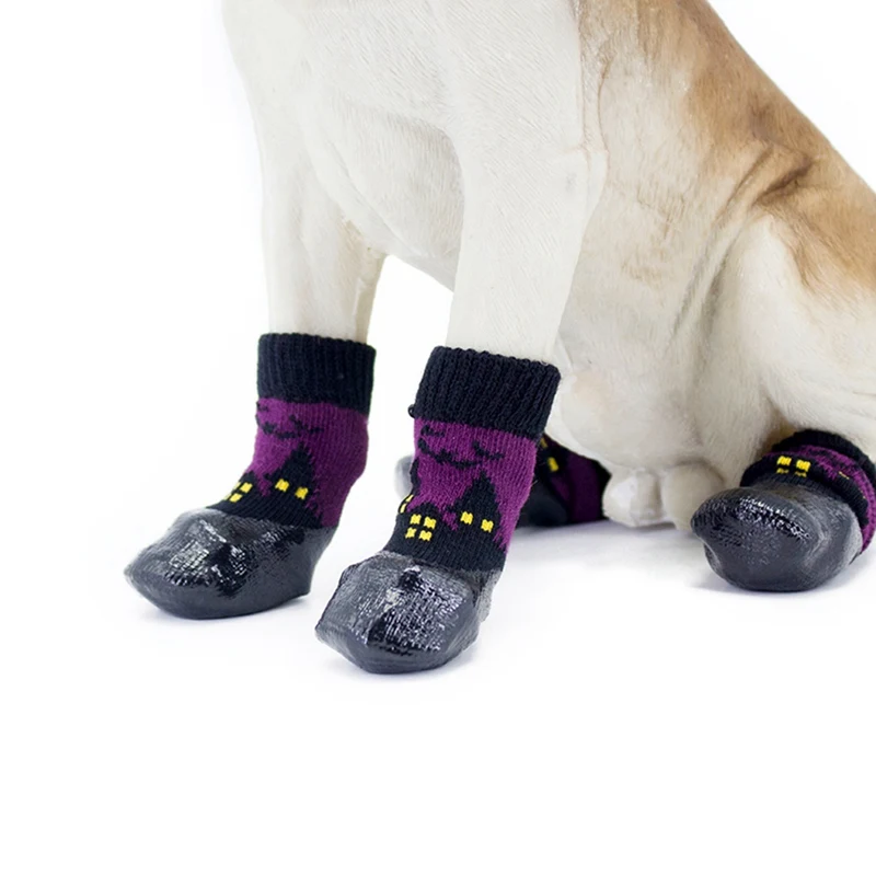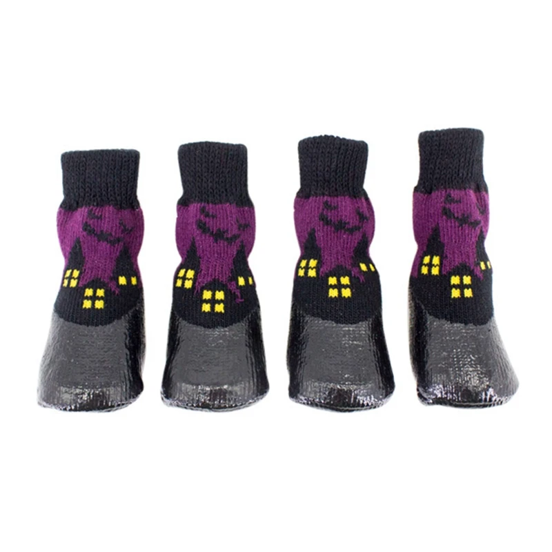 Водонепроницаемые носки для домашних животных на Хэллоуин, противоскользящие грязные нескользящие носки для маленьких, средних и больших собак