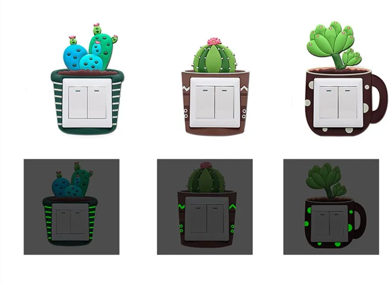 Светящийся Переключатель кактуса, креативный переключатель, Набор розеток, настенный стикер, переключатель, декоративная светящаяся наклейка, декоративный набор
