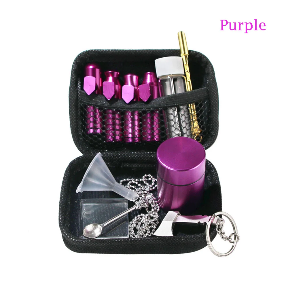 Сумка для хранения набора для курения, переносной чехол для сигарет, аксессуары для сигарет, описание продукта: длина (длина): 116 мм/4,57 дюйма Ширина изделия (ширина): 80 мм/3,15 дюйма Вес изделия (вес): 200 г Продукт содержит: металлическая пулевидная бутылка 4 местная Золотая дымовая ложечка для ногтей 1 стеклянный резервуар для масла 1 металлический резервуар для хранения 1 ожерелье металлическая сигаретная ложечка для ногтей 1 металлический маленький топор 1 Стеклянная часть 1 маленькая воронка 1 тканевый пакет 1
