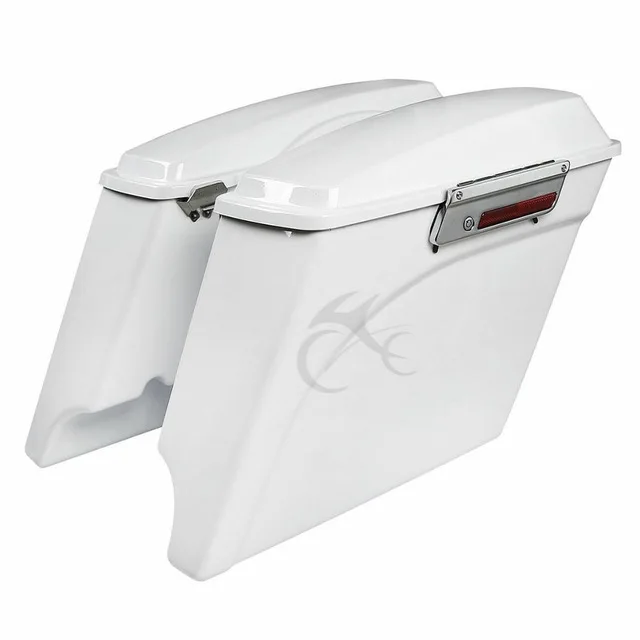Saddlebags are stretched 5" longer than stock to cover the muffler front to back and give that stretched look.