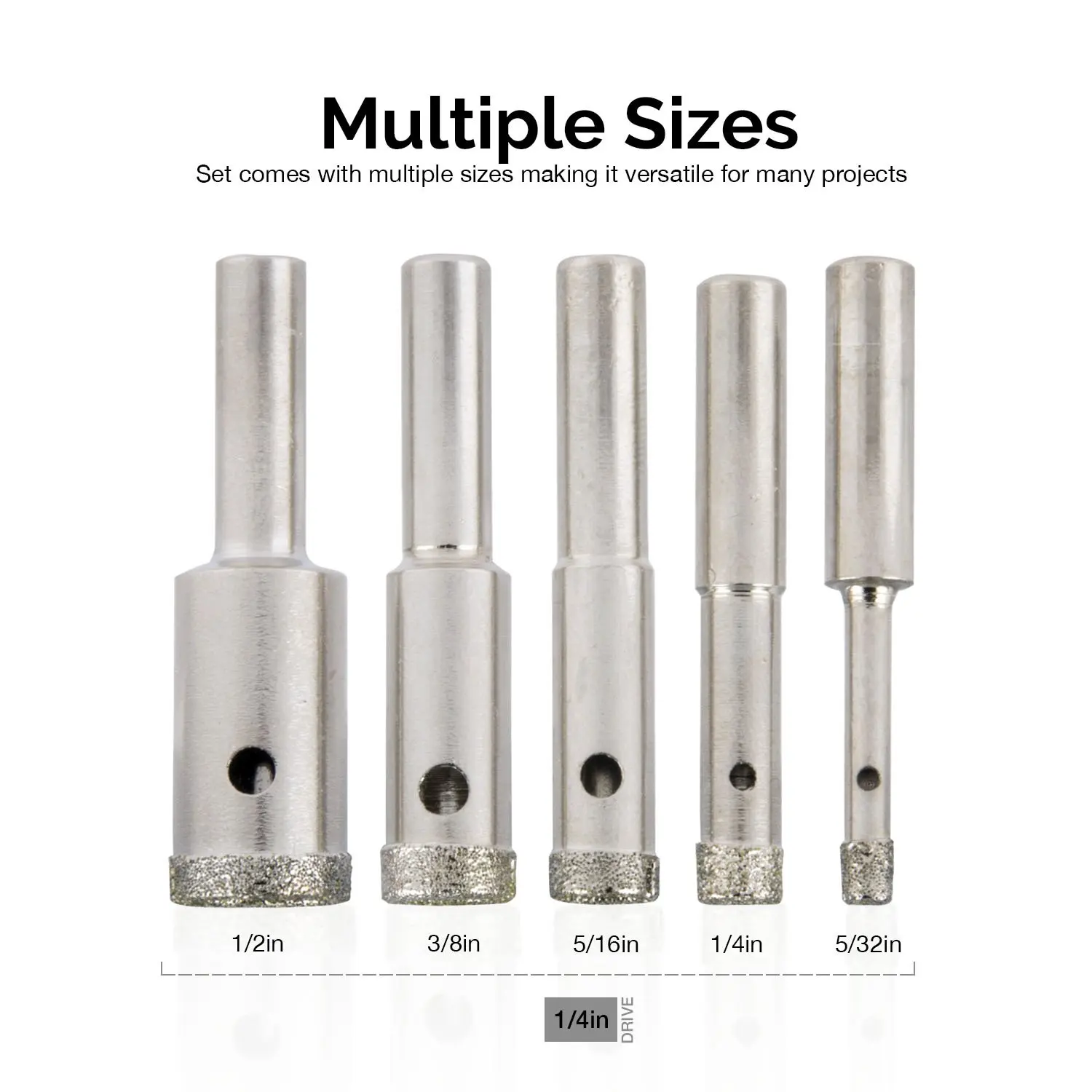 Примечание: измерения выполнены вручную, возможна погрешность в 2-3 мм. И цвет изделия, отображаемый на фотографиях, может оказаться несколько иным, так как мониторы разных компьютеров калибруются по разному. Надеемся на понимание. Посылка включает в себя: 5xСверло с алмазным покрытием