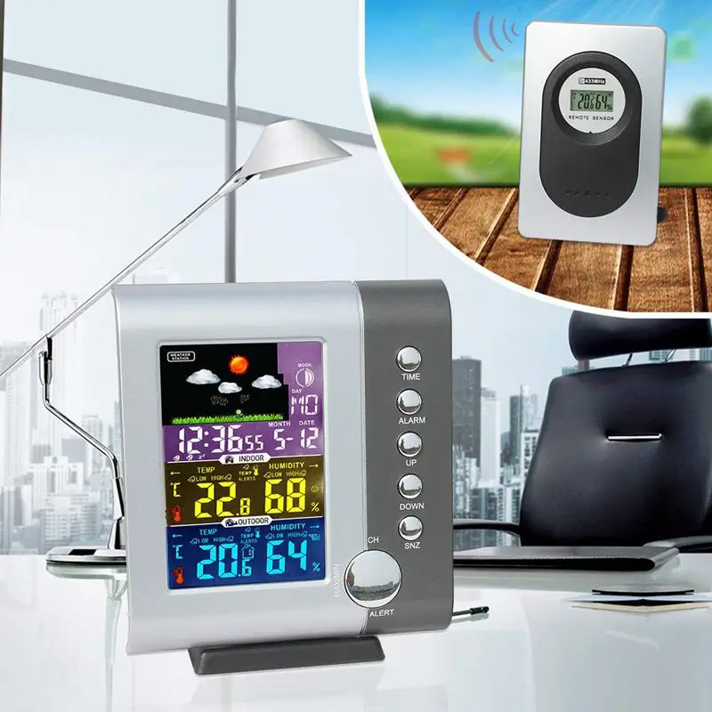 Представляем беспроводную цветную метеостанцию с точной погодой в реальном времени на заднем дворе. Анимированные цветовые прогноза с трендами реагируют на изменение барометрического давления. Индикатор комфорта в помещении может помочь достичь комфортной и здоровой среды жизни и может даже сэкономить на нагревании. Отслеживайте и отслеживайте тренды температуры при высоких и низких настройках оповещения. Измерение температуры и влажности при ежедневной минимальной/максимальной температуре-все на одном удобном для чтения цветовом дисплее с регулируемой яркостью.