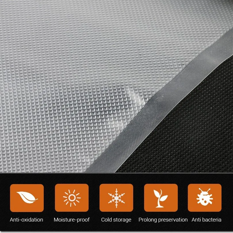 -Свободная резка, простота в использовании -Устойчивость к замерзанию, может выдерживать перепады температуры и нагреваться -Свежее время хранения, сохраняет запах, безопасность -Зеленая защита окружающей среды, вы можете отрезать рот запечатанного мешка, очистить и повторно использовать -Используется для вакуумной упаковки, асептической упаковки, зерновой мешок-это боковые линии давления, другая сторона гладкого профессионального вакуумного мешка, подходит для всех вакуумных камер дома и за рубежом, принцип автоматической вакуумной упаковочной машины. Упаковочный лист: 1 * рулон вакуумной упаковки
