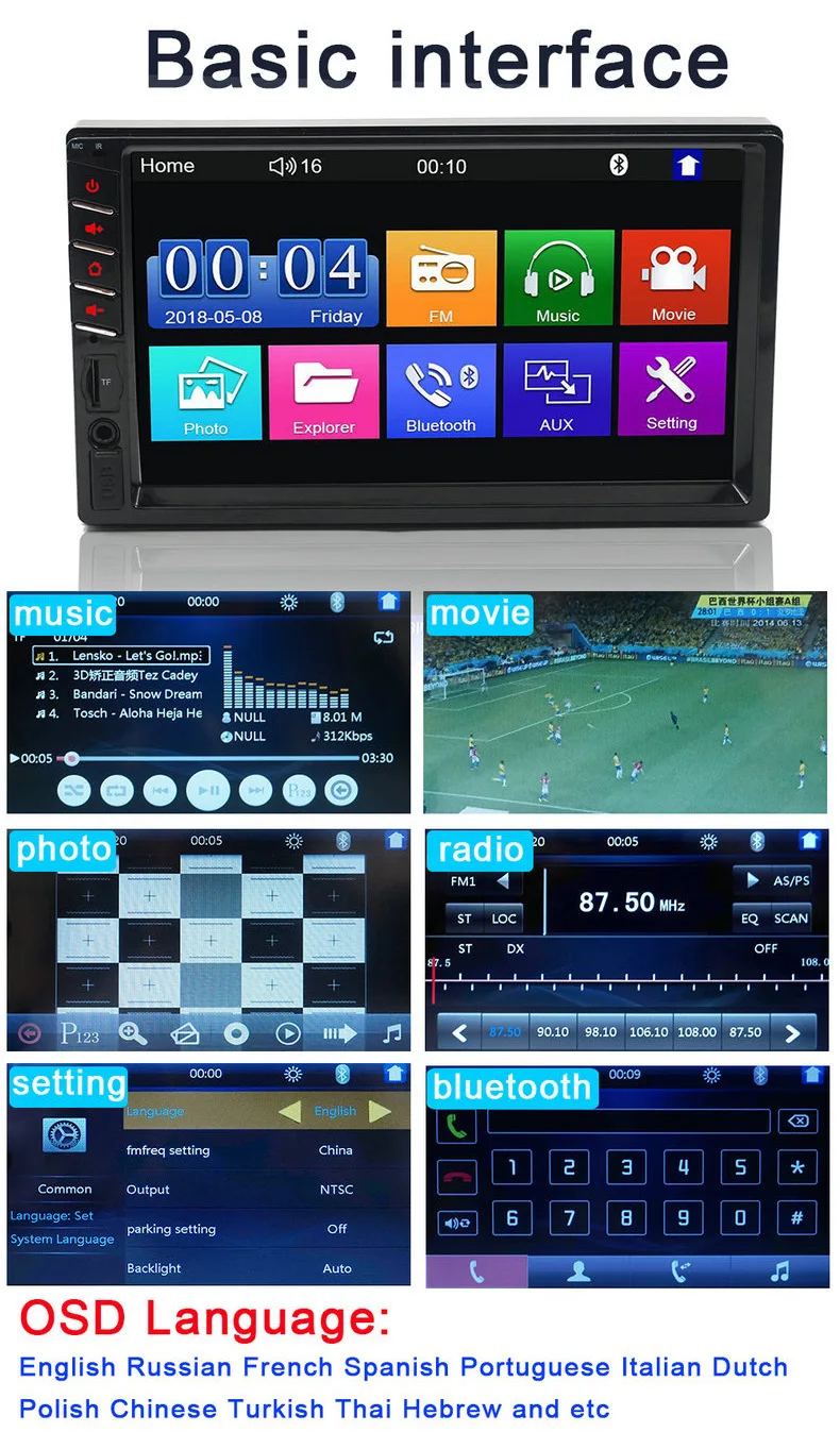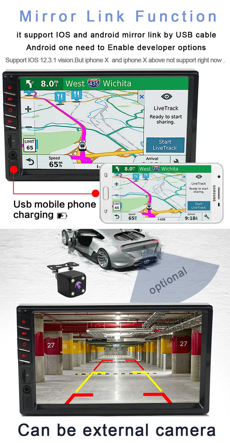 7 дюймов 2din MP5 с Bluetooth, FM, зеркальная связь (IOS и Android), вход камеры заднего вида, рулевая рейка