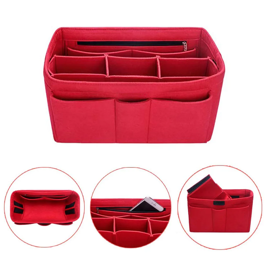 Войлочная вставка Сумка на молнии с несколькими карманами Сумочка Кошелек Органайзер держатель макияж путешествия
