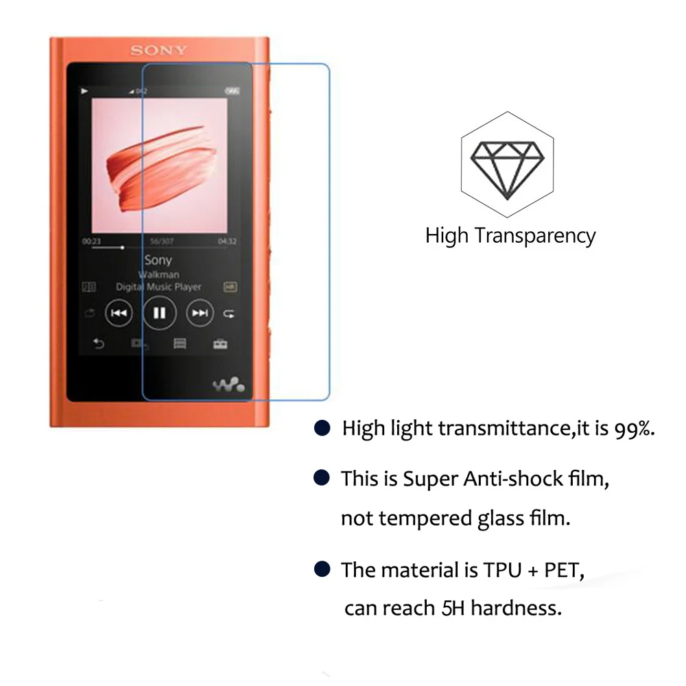 2 упаковки для Sony Walkman NW-A55HN A56HN A57HN A50 A55 A56 A57 MP3 плеер защитная пленка и противоударный мягкий силиконовый чехол
