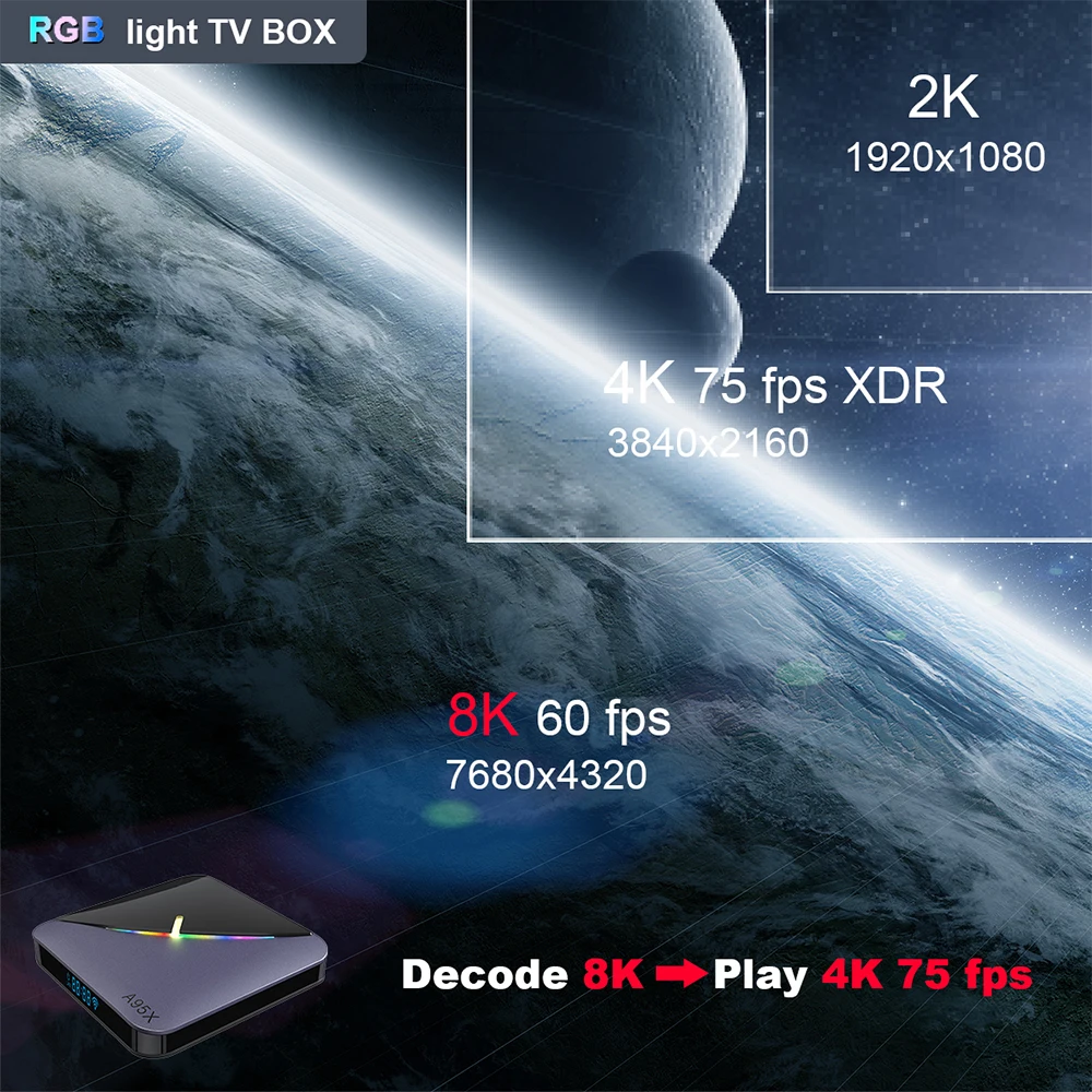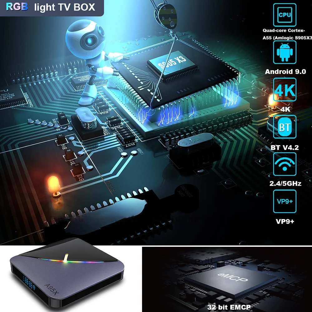 S905X3 64-разрядным четырёхъядерным чипсет, cortex-A55 Процессор, поддержка TF карты расширения памяти.