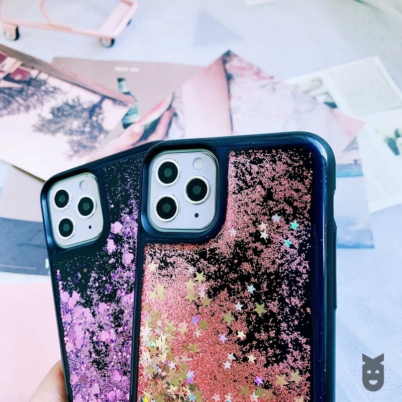 Для iPhone SE 5 5S 6 6s 7 8 Plus 10 X XS XR 11 Pro Max Жидкий блеск зыбучие пески Сердце Звезда черный мягкий силиконовый чехол из ТПУ