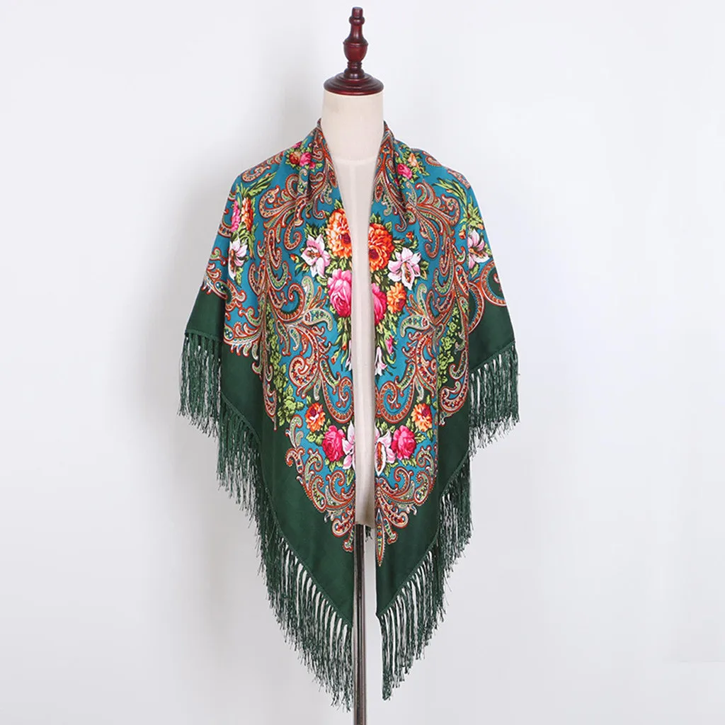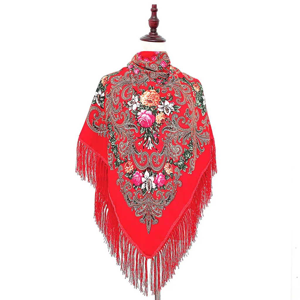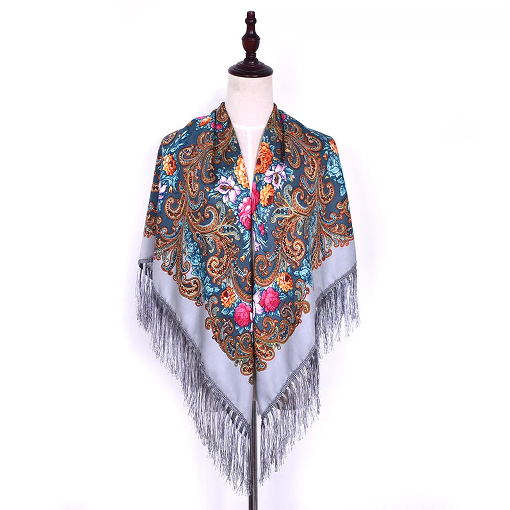 Женская мусульманская народная печать, квадратный шарф с кисточками, шаль для путешествий