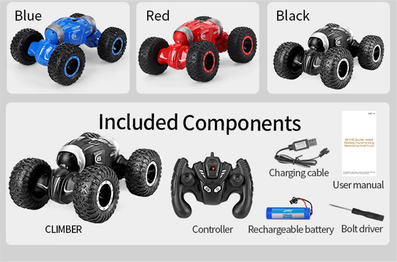 1 x RC автомобиль (встроенный аккумулятор), 1 x пульт дистанционного управления, 1 x руководство на английском языке, 1 x USB кабель для зарядки, 1 x отвертка