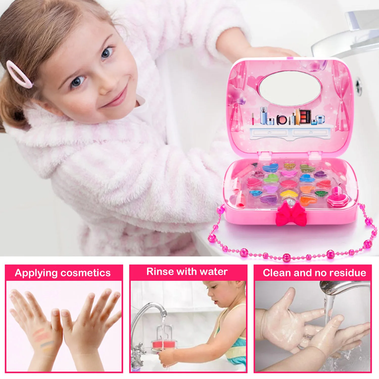 Настоящий детский набор для макияжа помогает развить интеллект ваших детей, практические способности, мастерство макияжа, воображение и творчество.