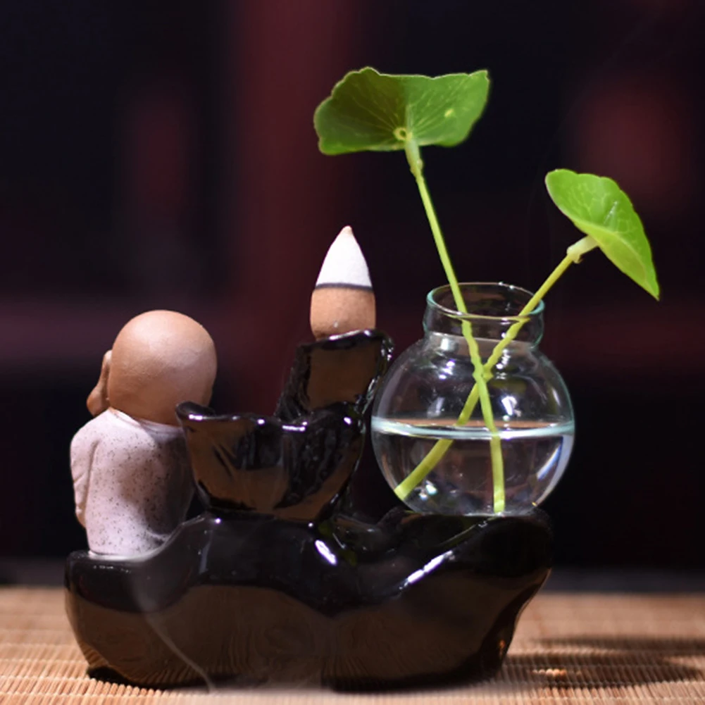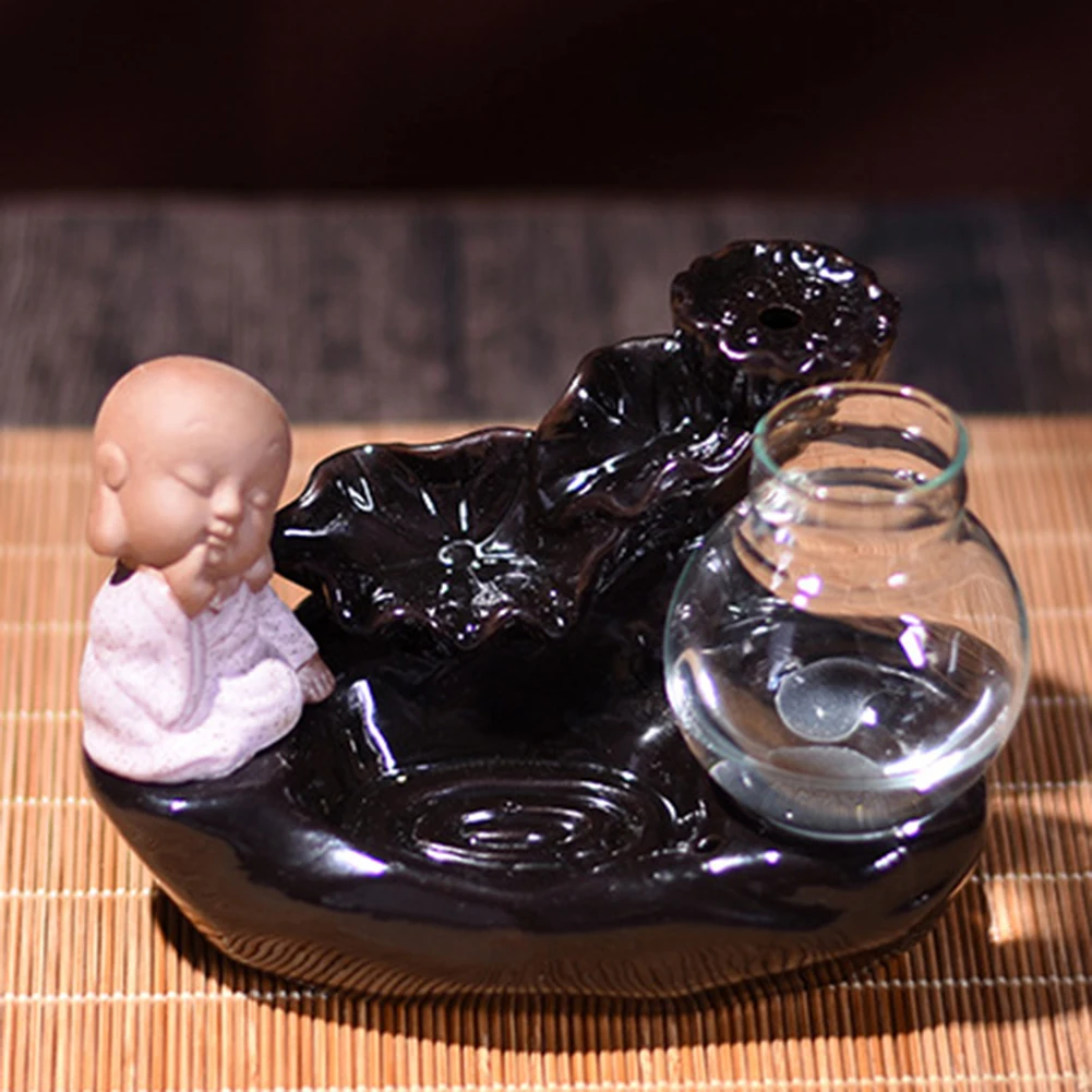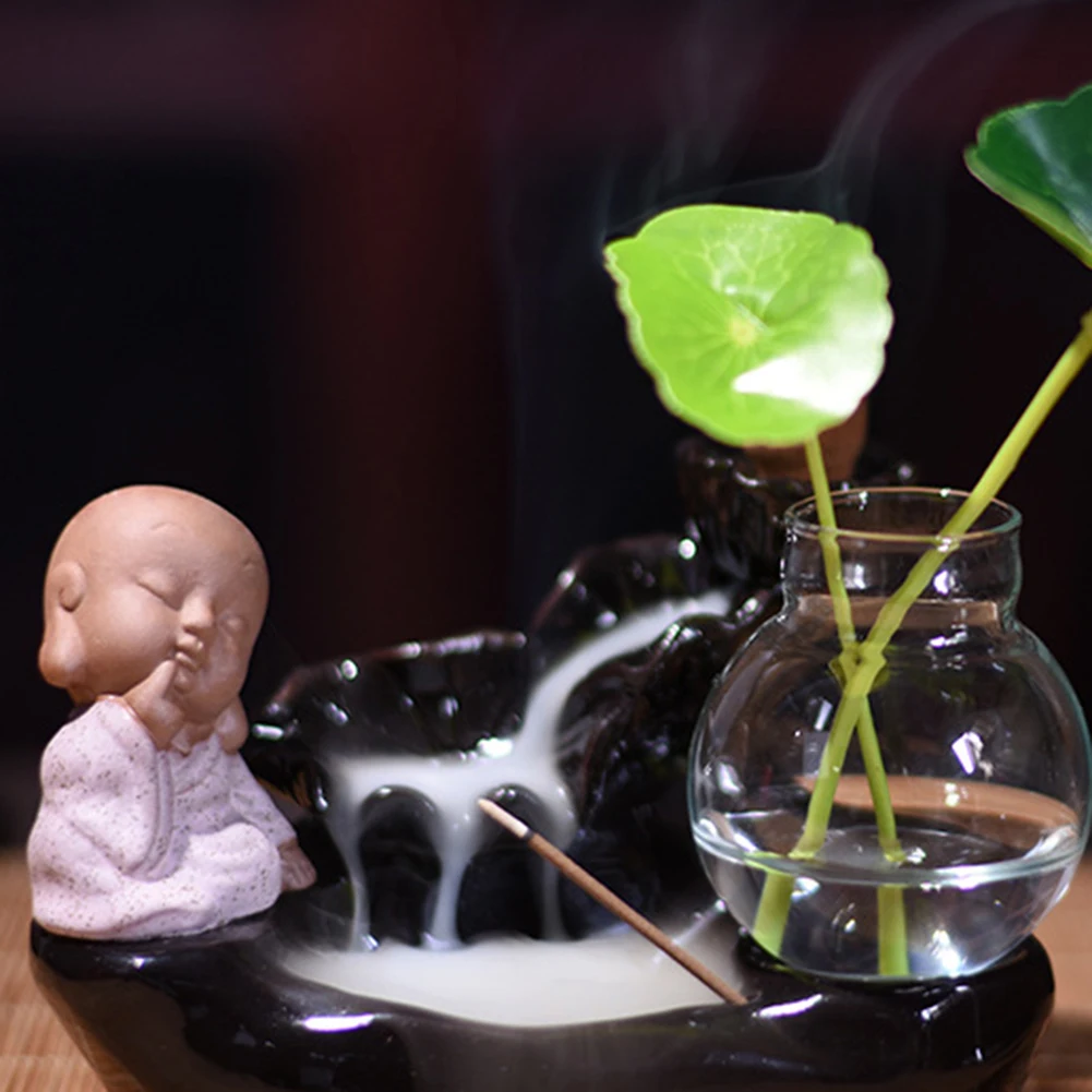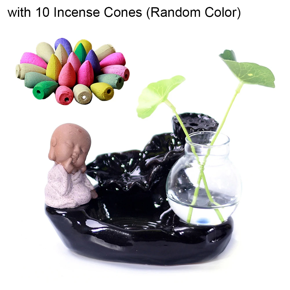 Благовония конусы горелки обратного потока листьев лотоса бутылка Монах Будда курильница домашний декор