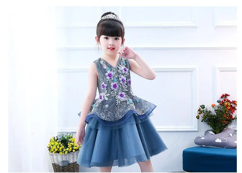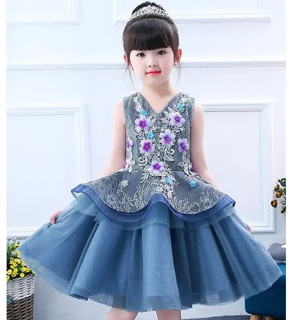 Горячая 3D вечерние платья в виде цветка для девочек 2 Слои цветочной аппликацией; платье для торжественных событий, платье подружки невесты, платье на свадьбу, платье принцессы, рождественское платье бальное платье Детские платья