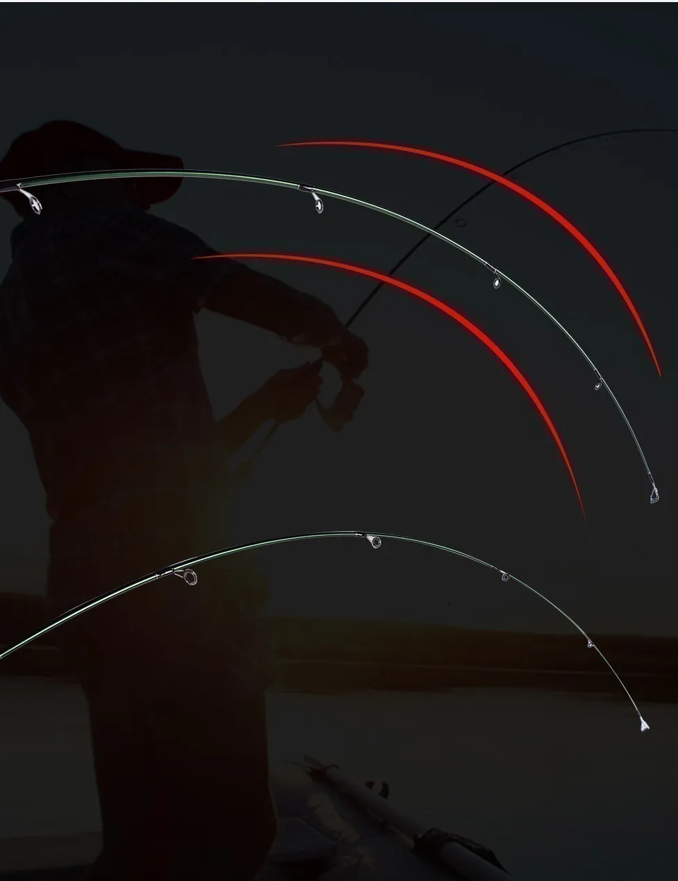 Углеродное волокно высокой плотности 30T делает удочку прочнее, эластичнее, не легко ломается, легко рыбачить.