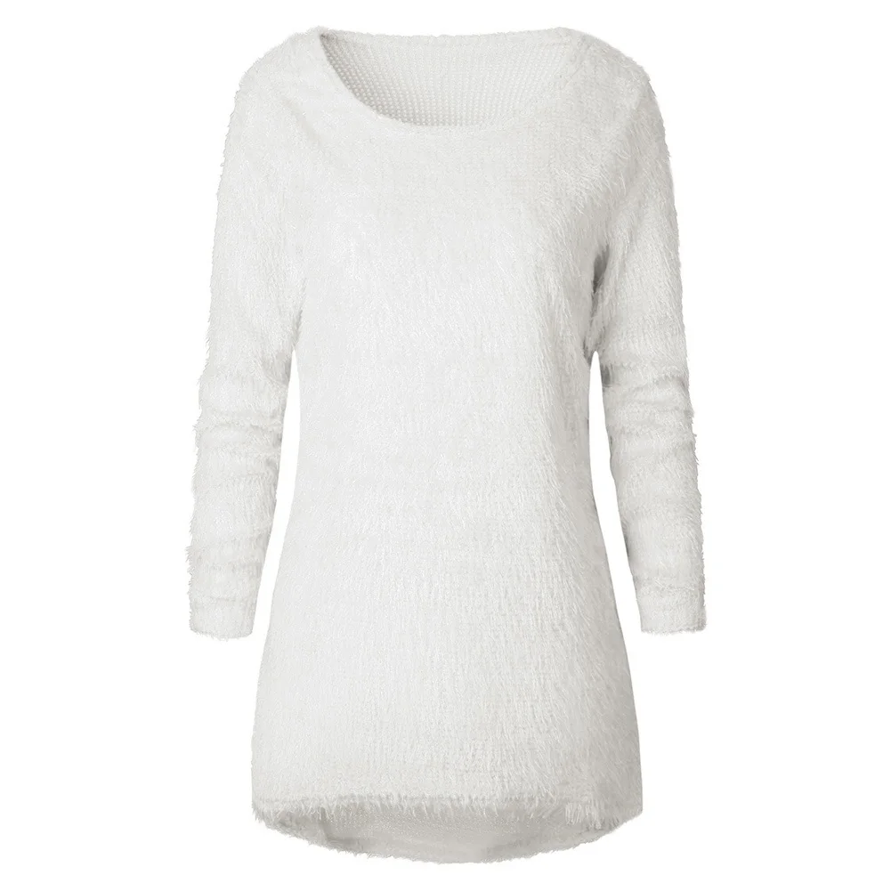 Женский осенне-зимний Свободный пуловер с круглым вырезом и длинными рукавами, повседневный джемпер