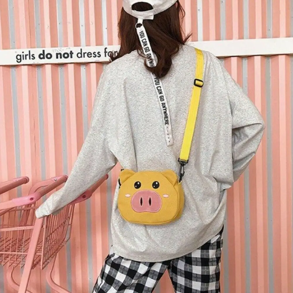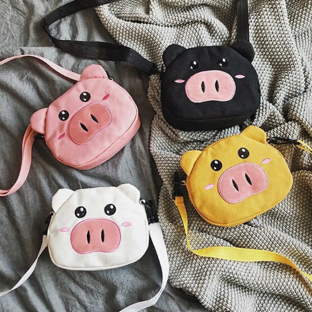 Милая поросенок сумка на одно плечо Холщовая Сумка Студенческая сумка через плечо для женщин и девочек