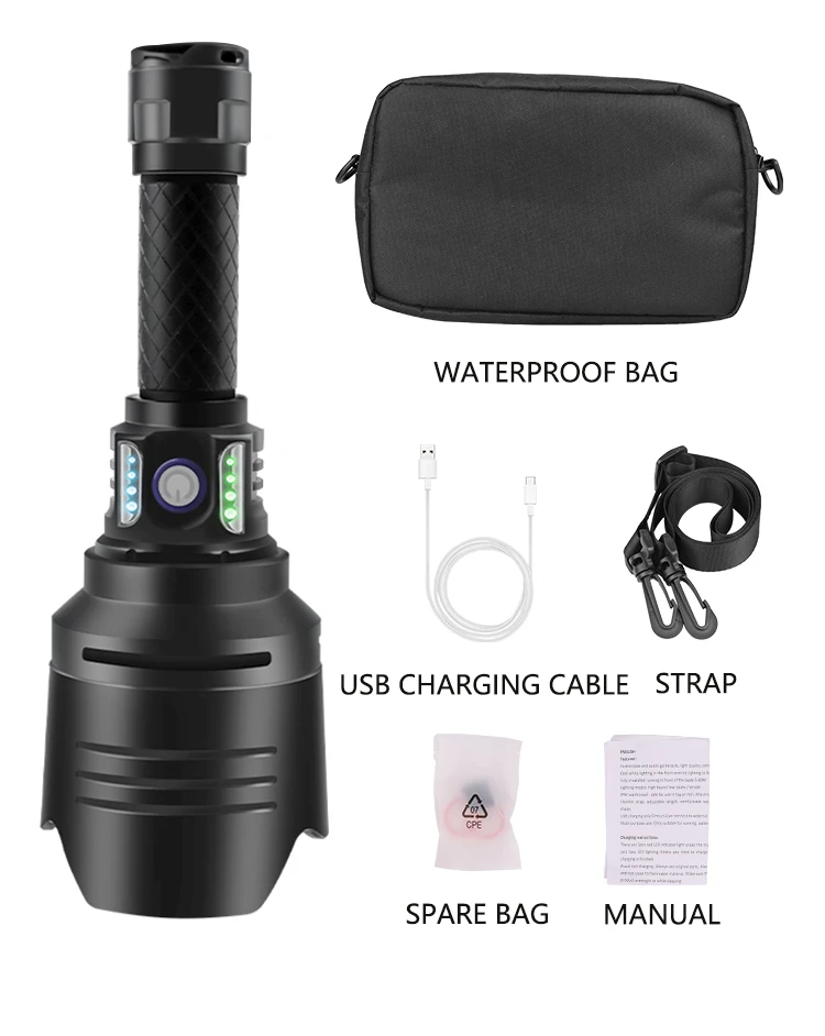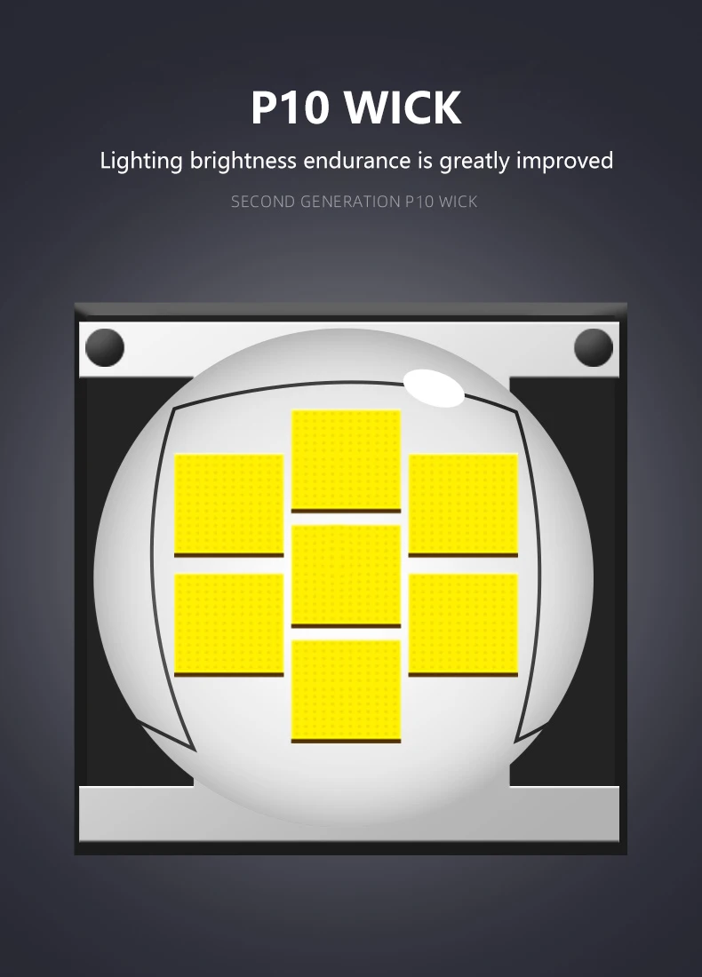 Светодиодный фонарик Burning Dark, 7 ядер, P10, телескопический водонепроницаемый фонарь с большим широкоугольным объективом, яркий дисплей, аккумулятор 18650