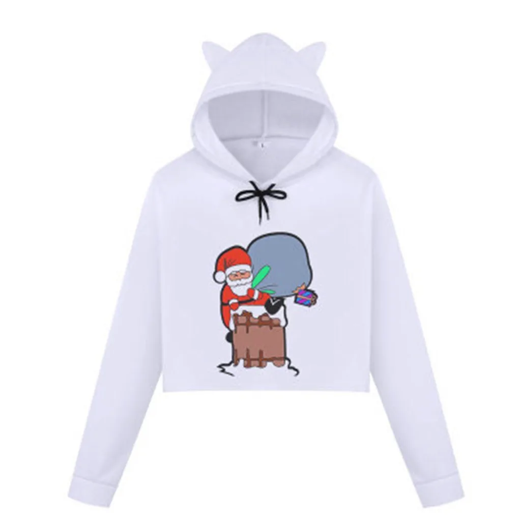 Женская рождественская толстовка с капюшоном с кошачьими ушками и принтом Снежной королевы, топы