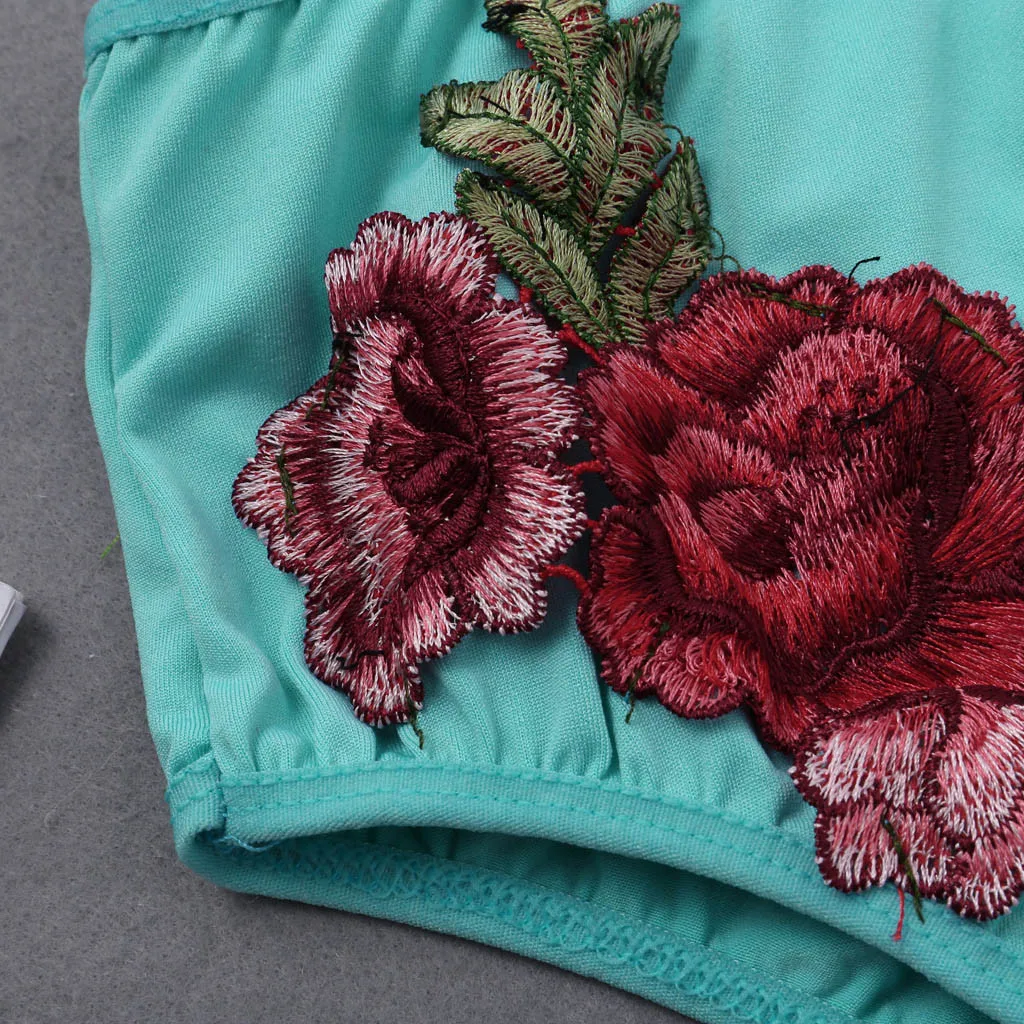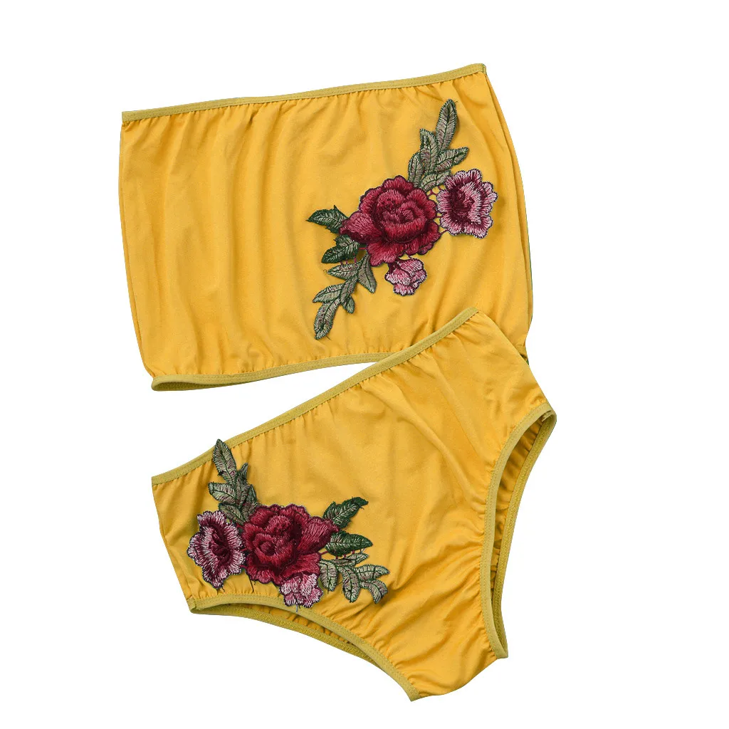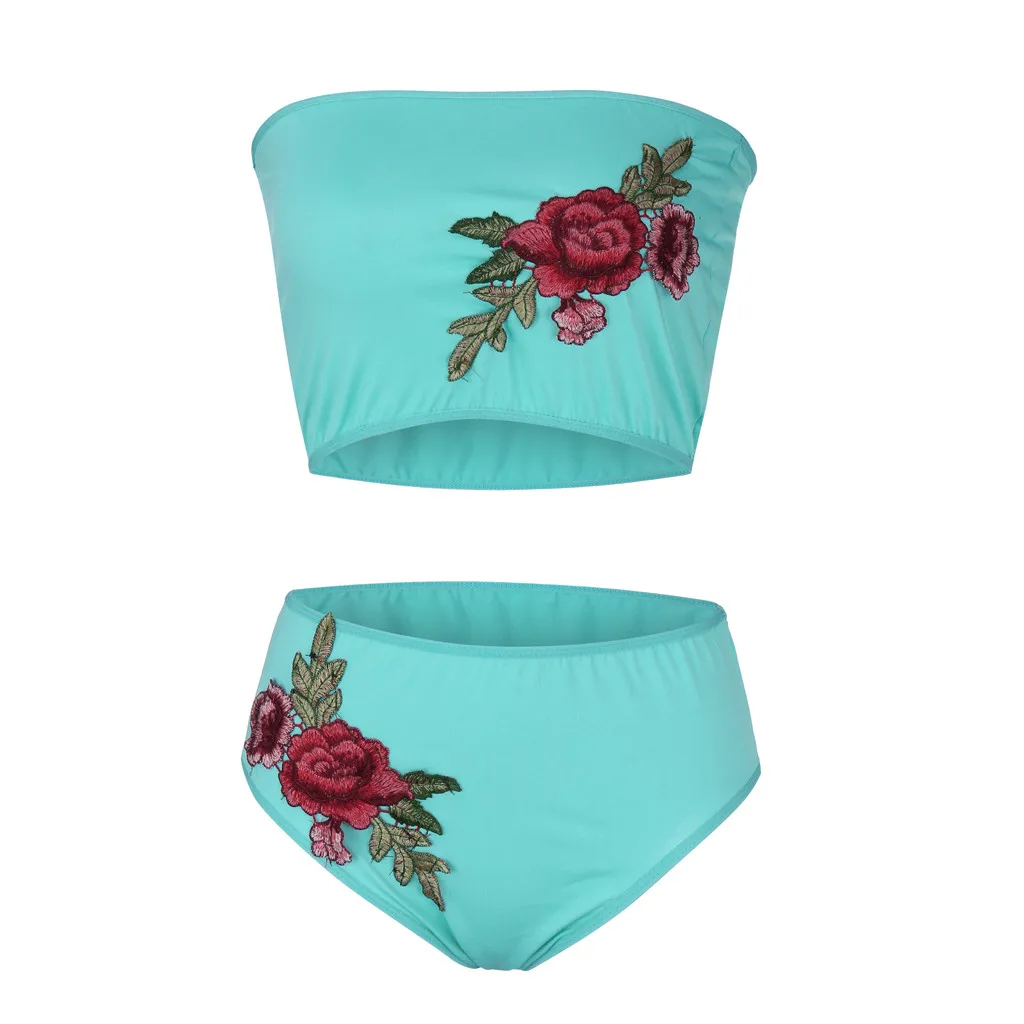 Женский модный сексуальный купальник с вышитыми розами, комплект бикини с высокой талией, купальный костюм