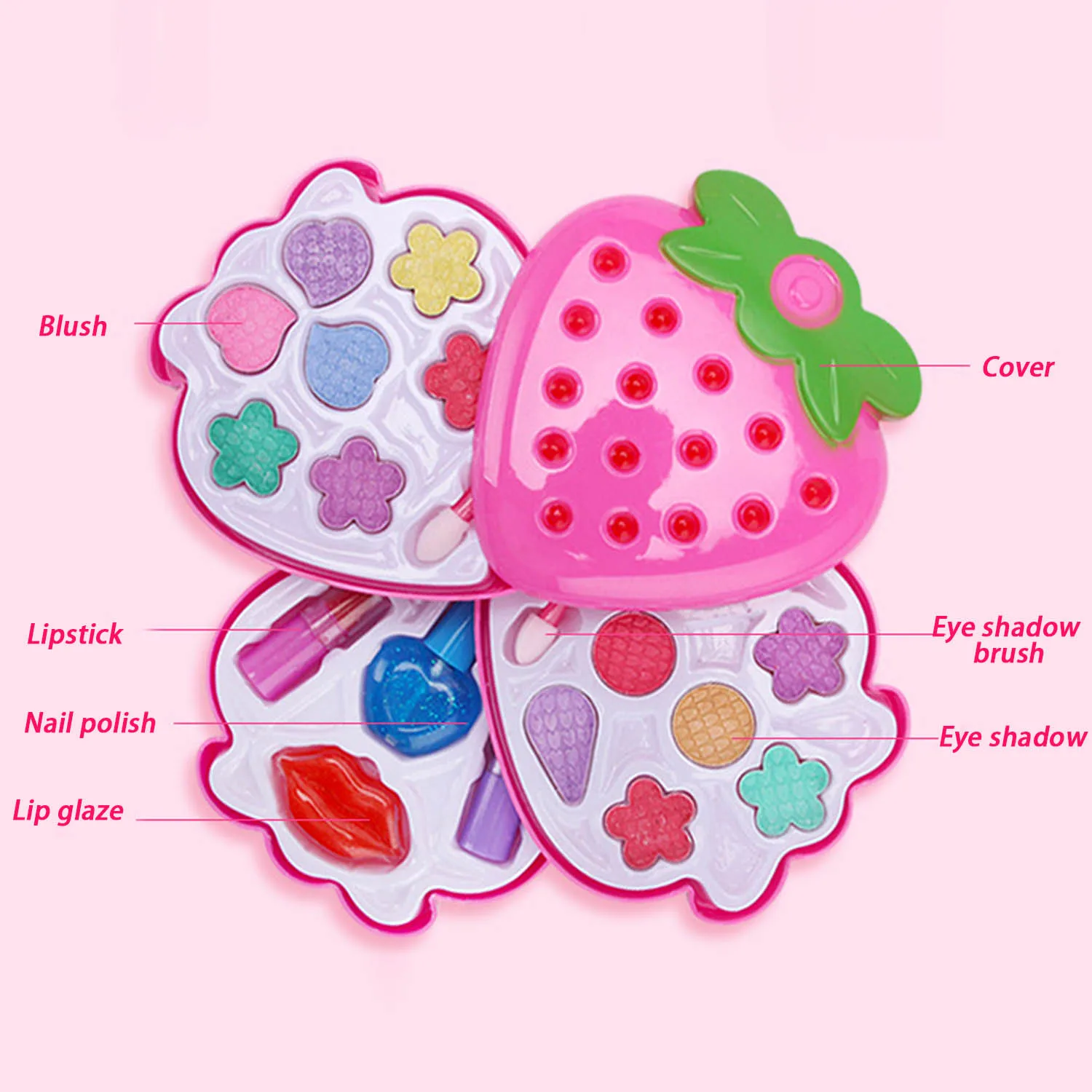 Детский макияж для девочек, косметический набор игрушек для ролевых игр с 4 слоями, чехол в форме клубники для дня рождения, Рождества, новогоднего подарка