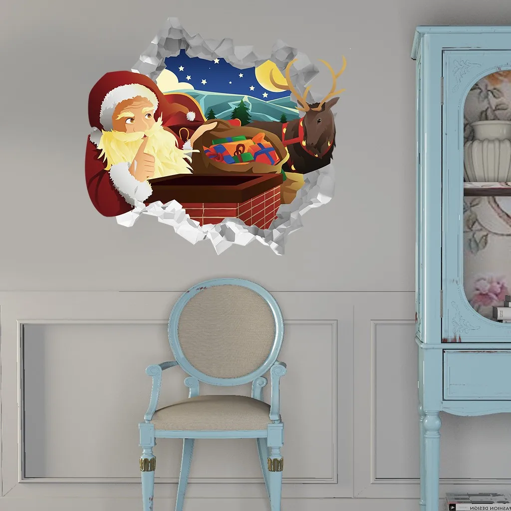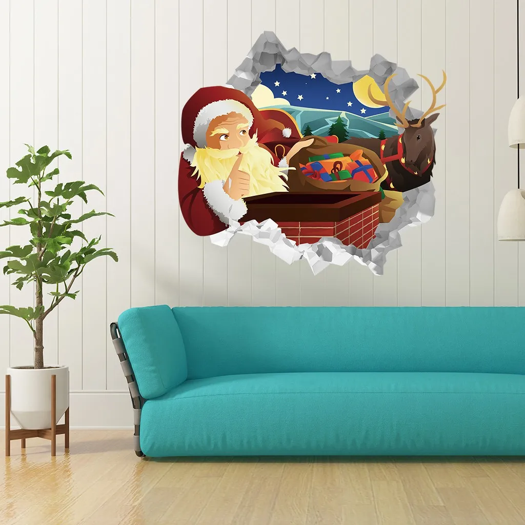 Рождественские 3D настенные стикеры Санта-Клаус виниловые наклейки на дверь, окно, настенные наклейки для дома, декоративные наклейки DIY