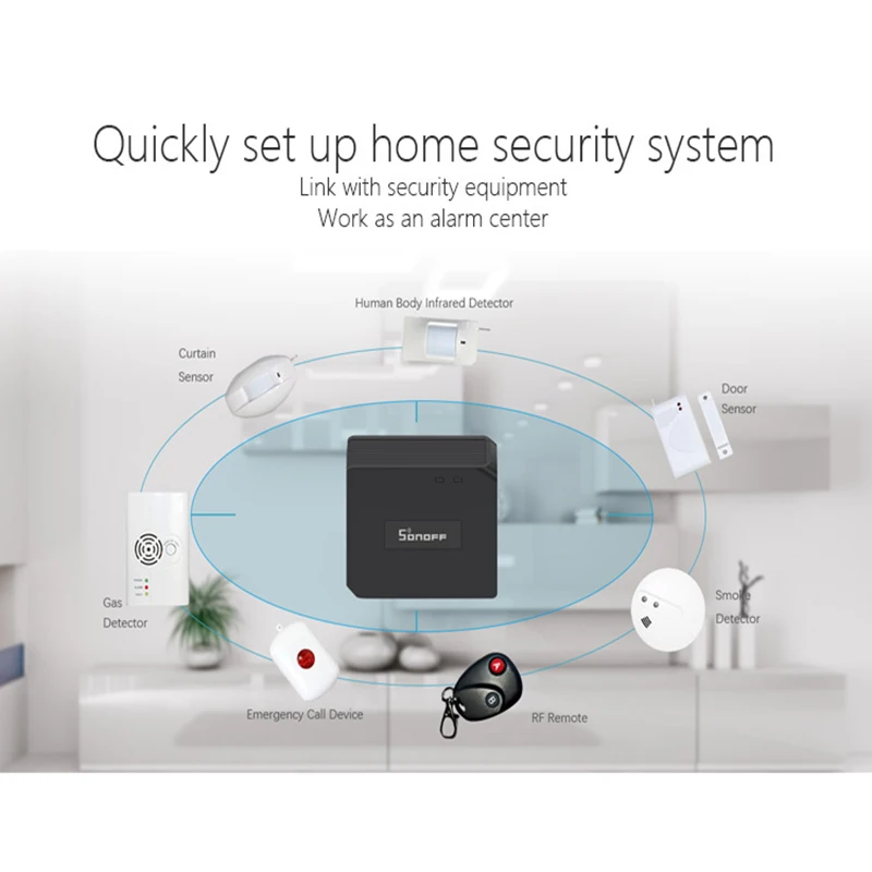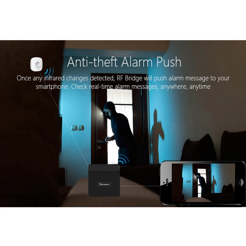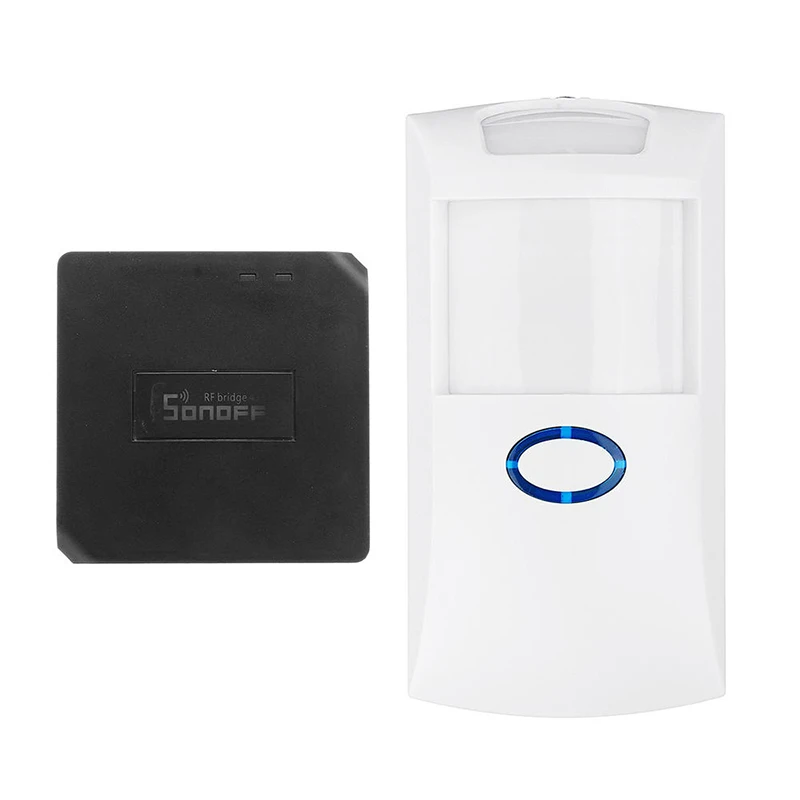 Модель 1: дверной датчик Sonoff DW1 Модель 2:Sonoff PIR2 человеческий инфракрасный датчик 433 Модель 3:Sonoff PIR2 инфракрасный датчик человека 433 + умный переключатель Sonoff RF Bridge Модель 4: датчик двери Sonoff DW1 + умный переключатель Sonoff RF Bridge