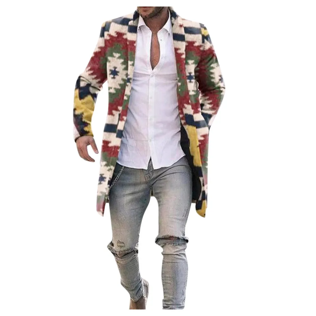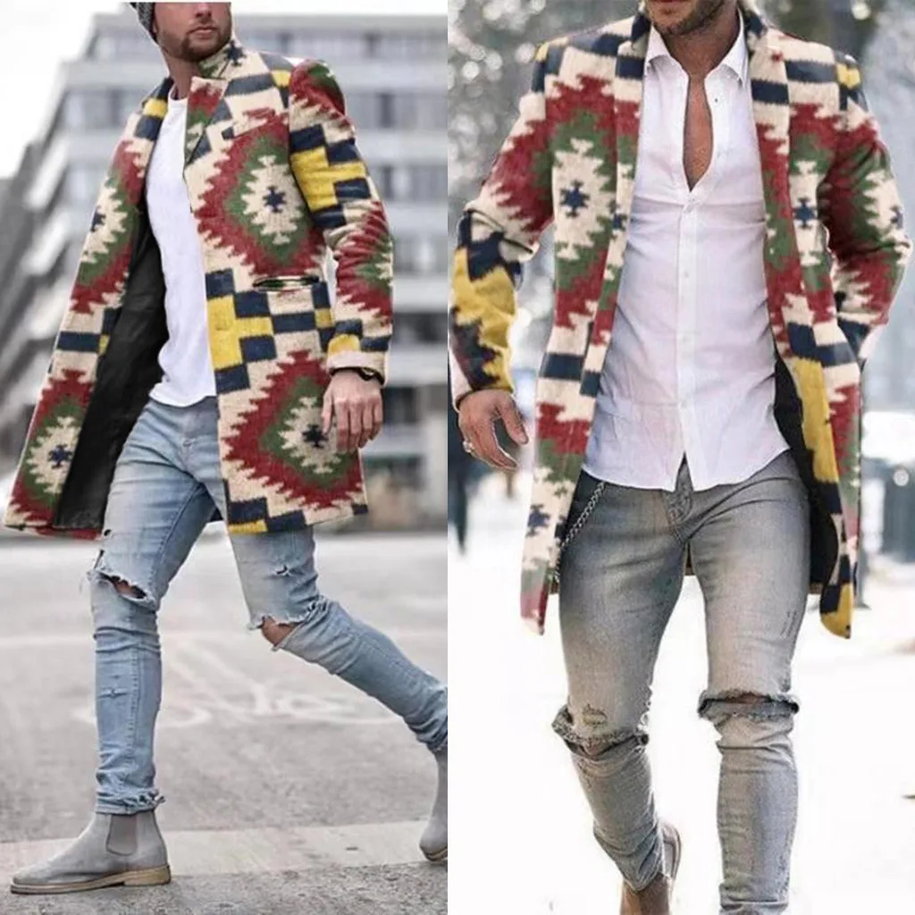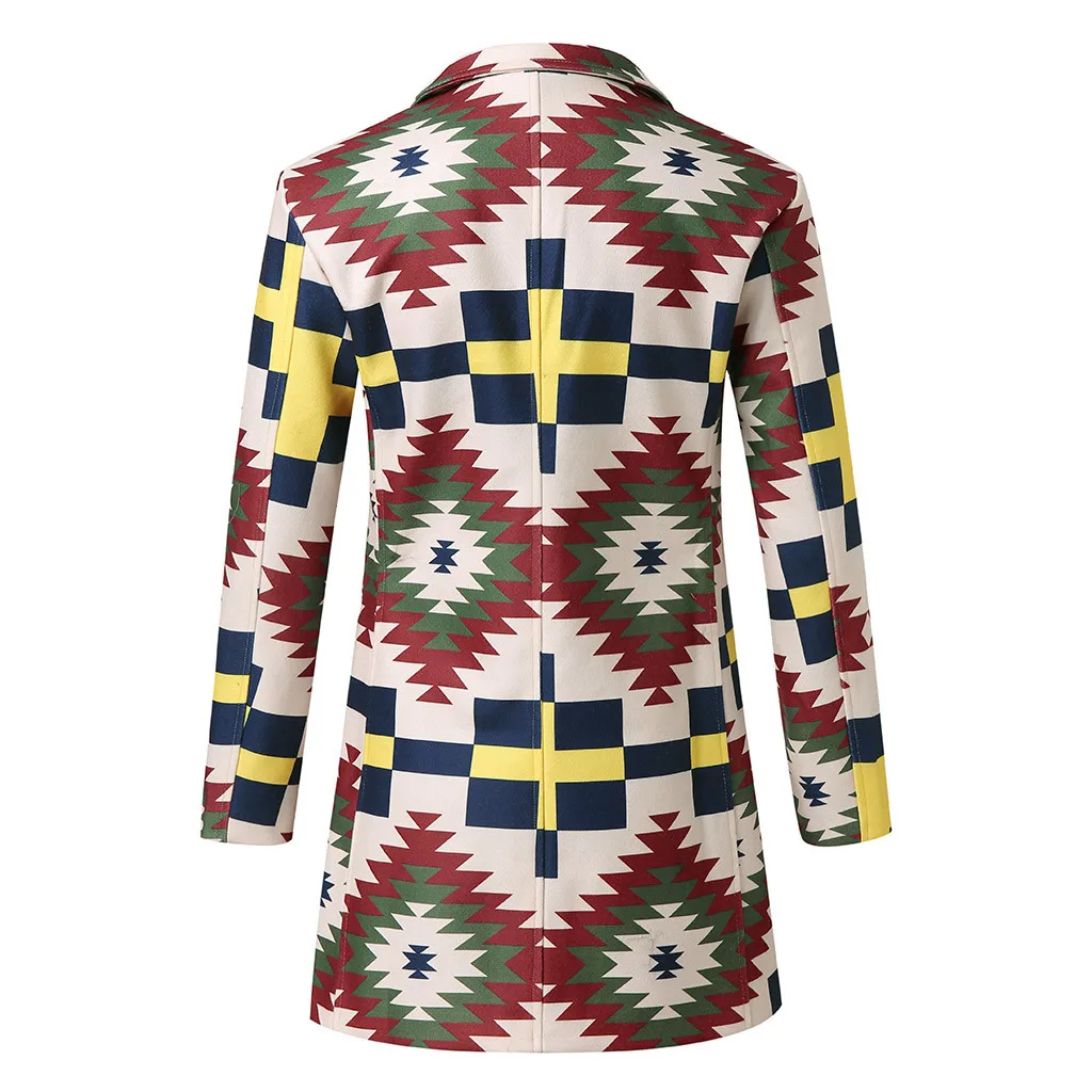Модное мужское однобортное шерстяное пальто в радужную клетку, семь цветов