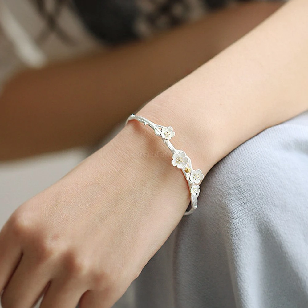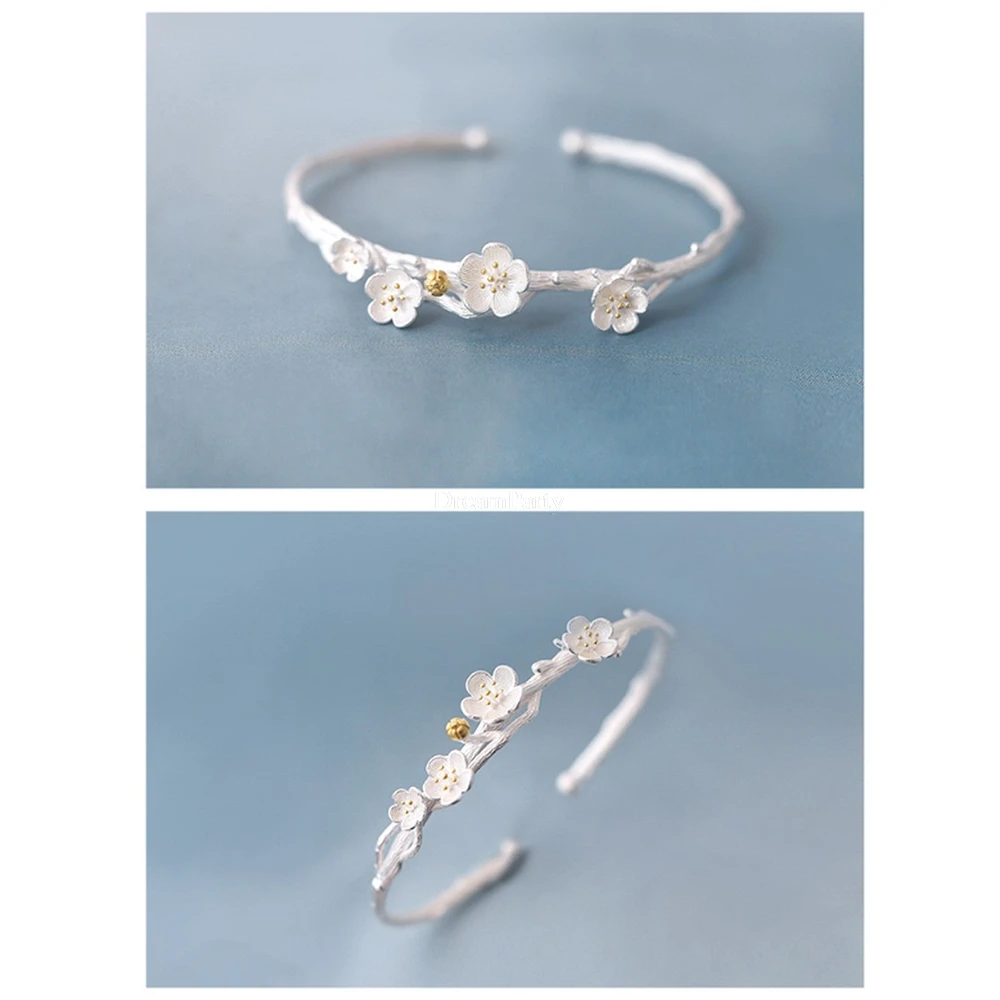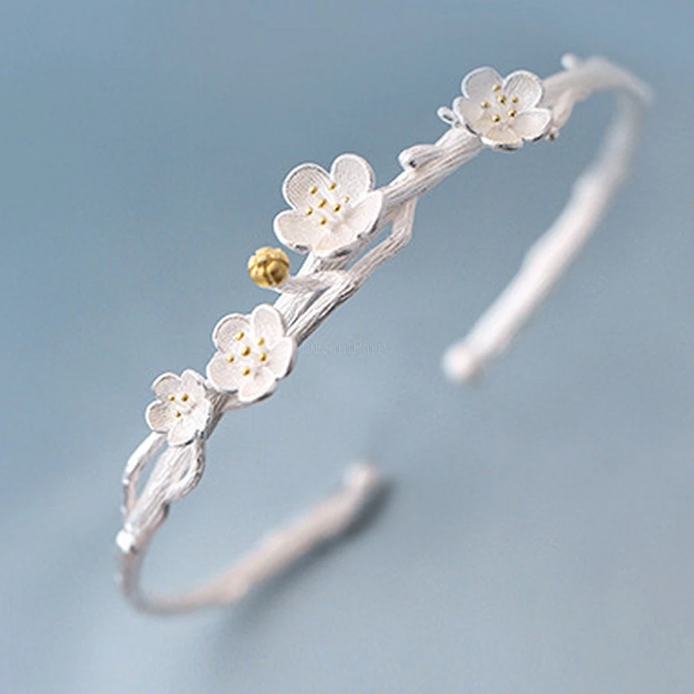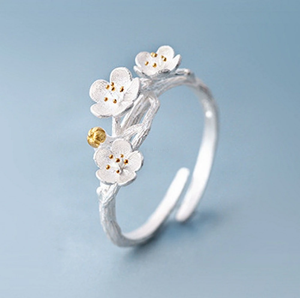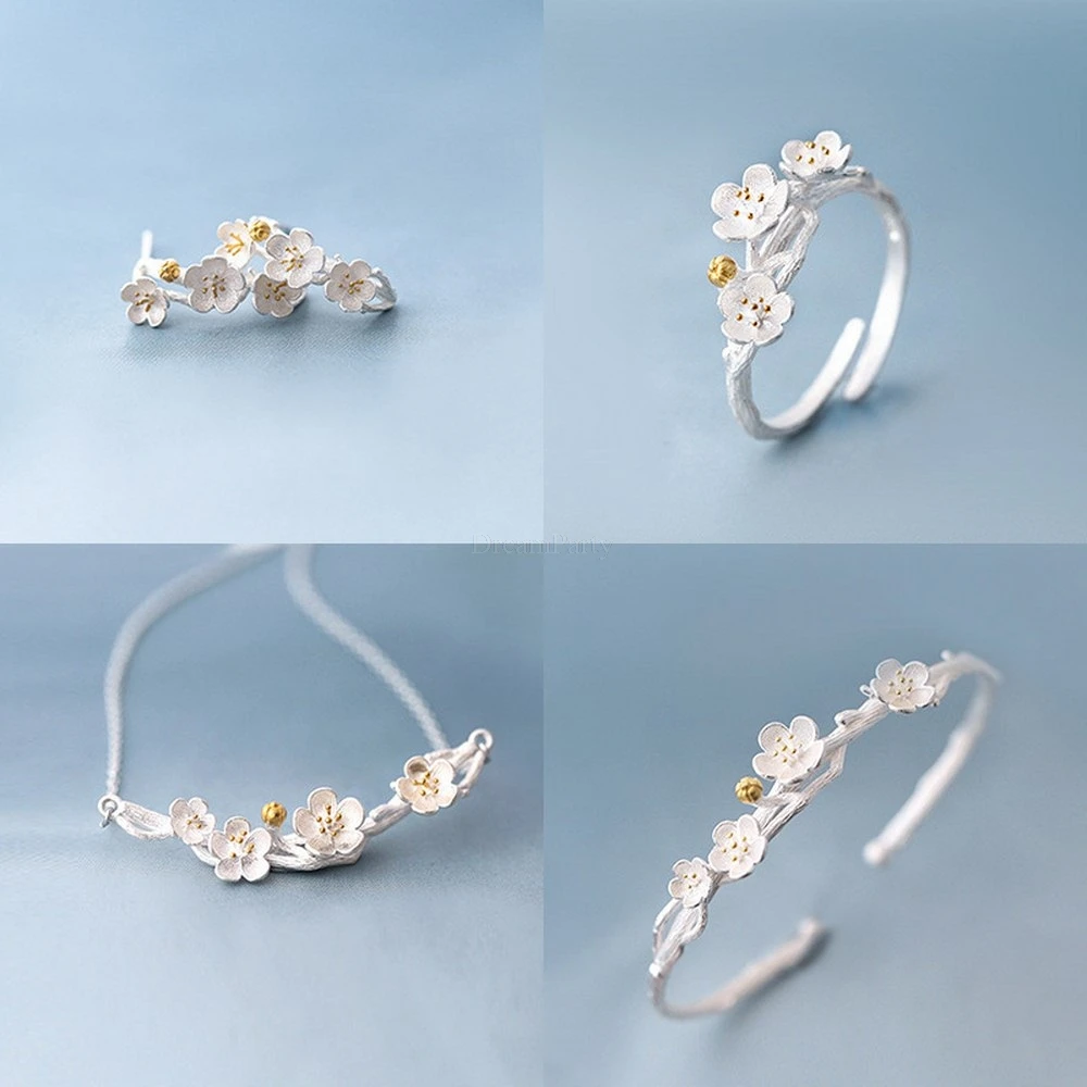 S925 простое серебро, с использованием шлифованной текстуры. Каждый цветок отполирован вручную, и тычинки также ярко видны.