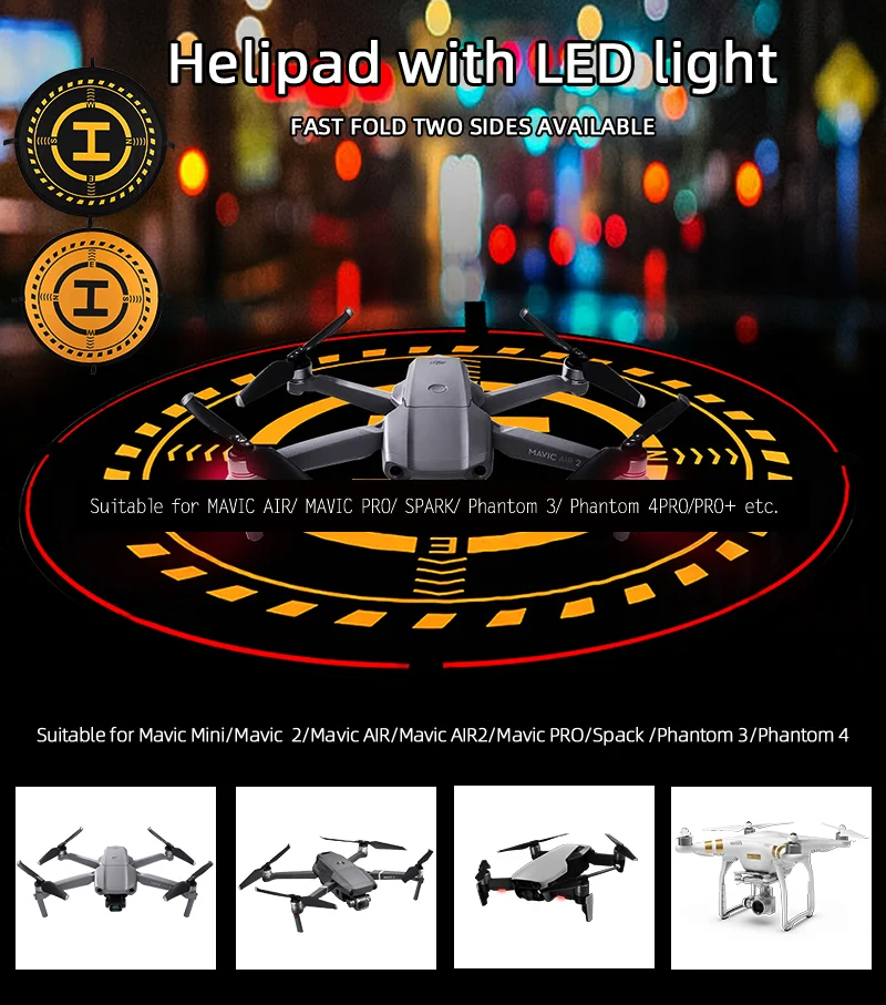 70 см посадочная площадка с светодиодный светильник складной парковочный тармак для DJI Mavic Pro Air 2 Mavic Mini 2 Mavic 2 Zoom Spark Phantom 3 4 Pro Inspire 1 Drone Дизайн освещения, позволяет легко вернуться в ночное время, Режимы: обычная медленная вспышка-быстрая вспышка-выключение, Тип батареи: 2 шт. AA батареи, (Примечание: батарейки в комплект не входят), Компас направления, помогая найти на поле, Продукт включает: 1 Набор посадочных площадок, Не включает дроны.