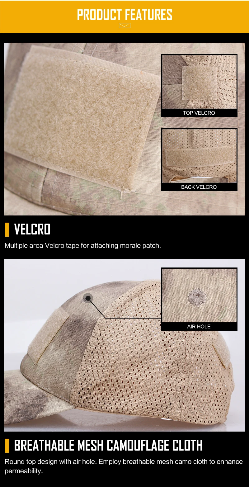 Круглый дизайн с отверстием для воздуха. Используется дышащая сетчатая камуфляжная ткань для повышения проницаемости.