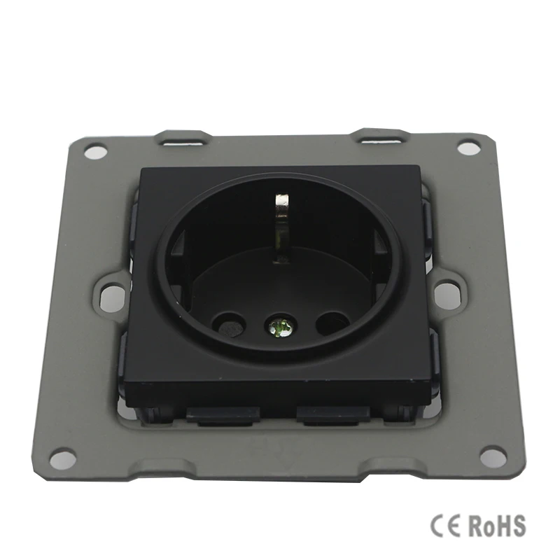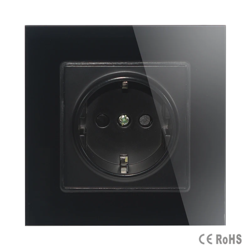 UNKAS Новое поступление 16А стандарт ЕС настенная розетка без штепсельной вилки ЕС розетка, черная панель из хрустального стекла, GB-C7C1EU-1