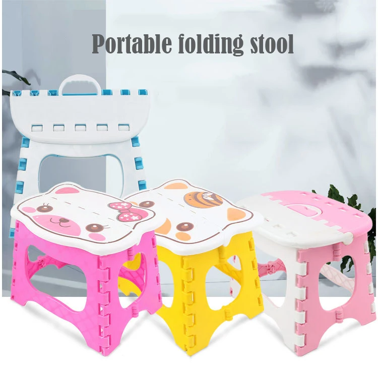 Мультяшная пластиковая маленькая скамейка, портативная ручка, маленький стул, складная маленькая скамейка для дома и улицы, рыбалки, кемпинга
