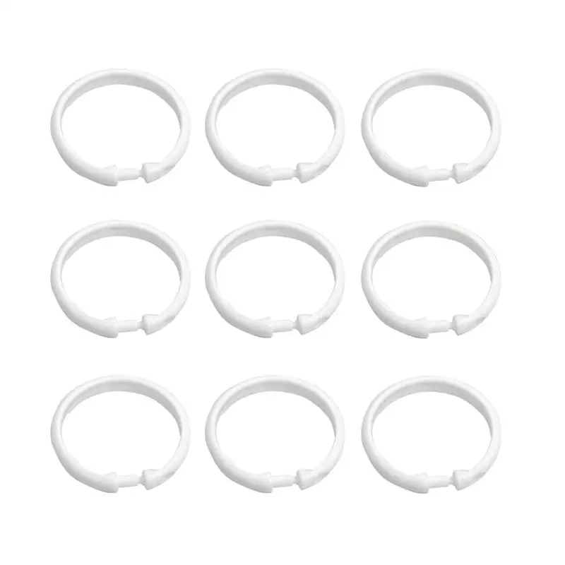 Крючки для штор для душа изготовлены из высококачественного пластика, прочные, легкие и удобные в эксплуатации. Овальная форма O может легко скользить свободно. Он обладает большой эластичностью и не легко сломать. Подходит для ванной, ванной комнаты, раздевалки, гардеробной и т. д.