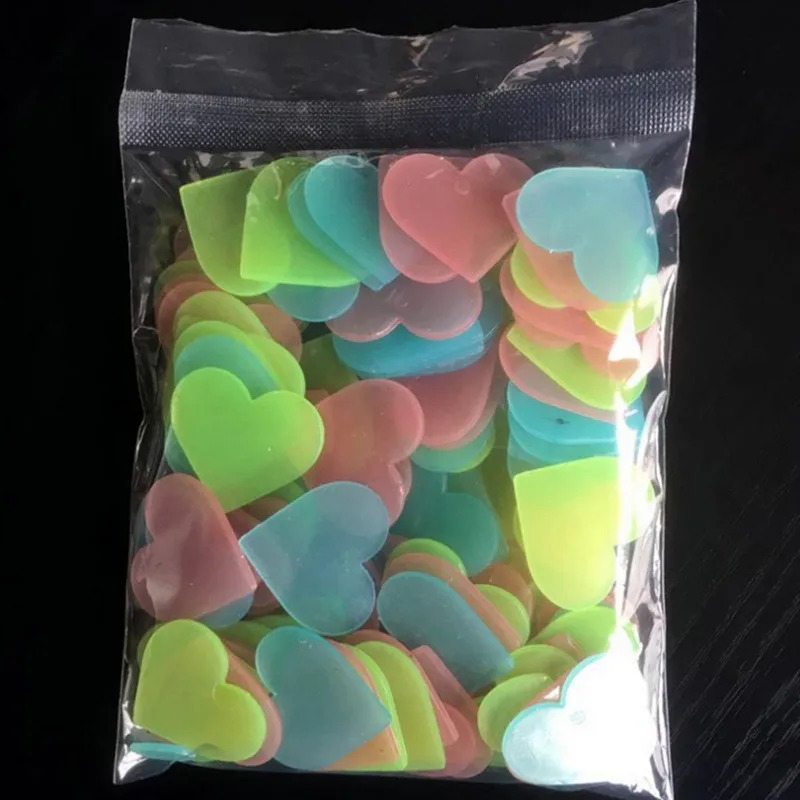 Особенность: 100% новый товар высокого качества. Примечание: Все виды энергии усваиваются в течение дня и хранятся. Ночь к свету! Идеально подходит для декорирования: на стену, двери, светильники, предметы обихода, потолки спальни и любую гладкую, чистую поверхность. Материал: пластик Стиль: в форме сердца Количество: 100 шт. Размер: Приблизительно 3x3 см/1,19x1,19 дюйма Содержимое упаковки: 100 шт. детская спальня красивые флуоресцентные светится в темноте звезд наклейки на стену