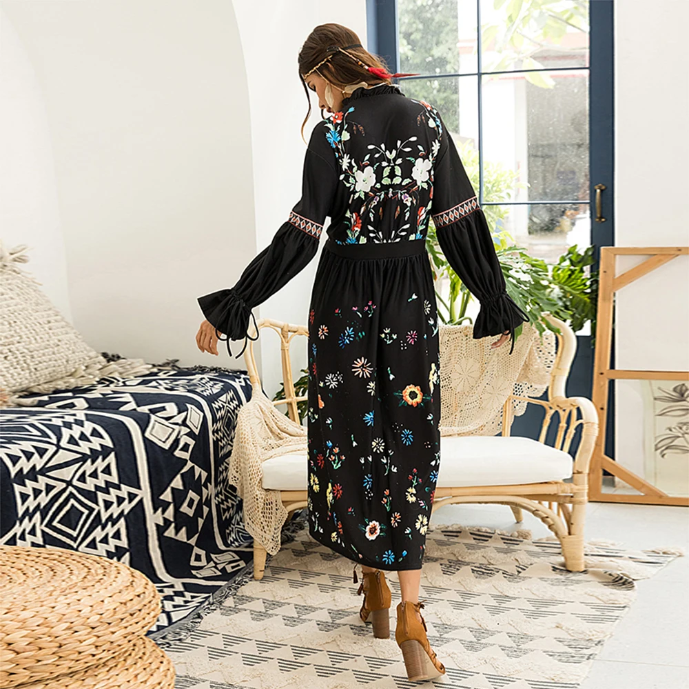 Женское длинное платье с отложным воротником, элегантное приталенное платье с принтом, вечерние платья, 2019