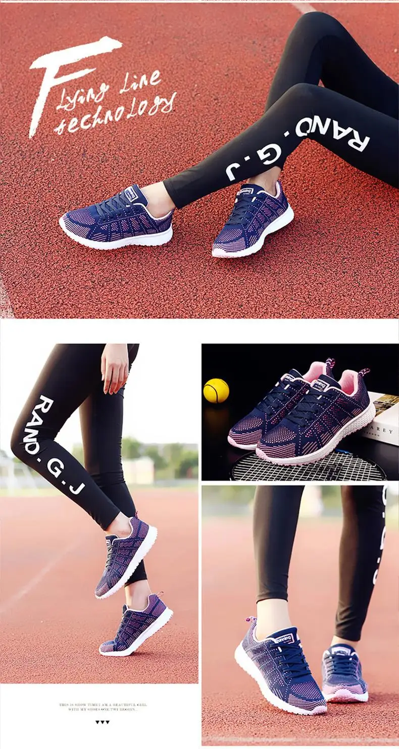 Спортивная обувь для женщин; обувь для тенниса; коллекция 2019 года; модные кроссовки на плоской подошве со шнуровкой из дышащего сетчатого материала; Повседневная обувь; Calzado Deportivo Mujer