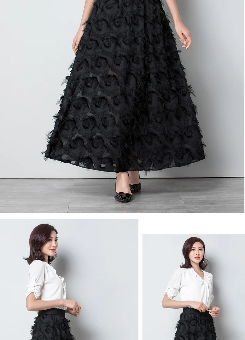 Длинная фатиновая юбка с кисточками и перьями, женская летняя Праздничная длинная юбка-макси с высокой талией, Женская миди-юбка для вечеринок, XXL