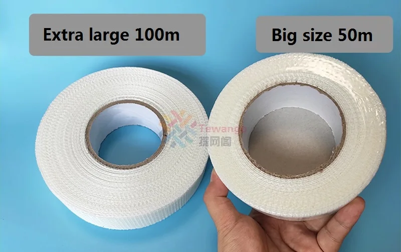 Самоклеящаяся сетчатая лента Экстра большого размера 50/100 м, устойчивая к трещинам, для защиты стен, ремень из стекловолокна, защита от воды, сетчатая сеть