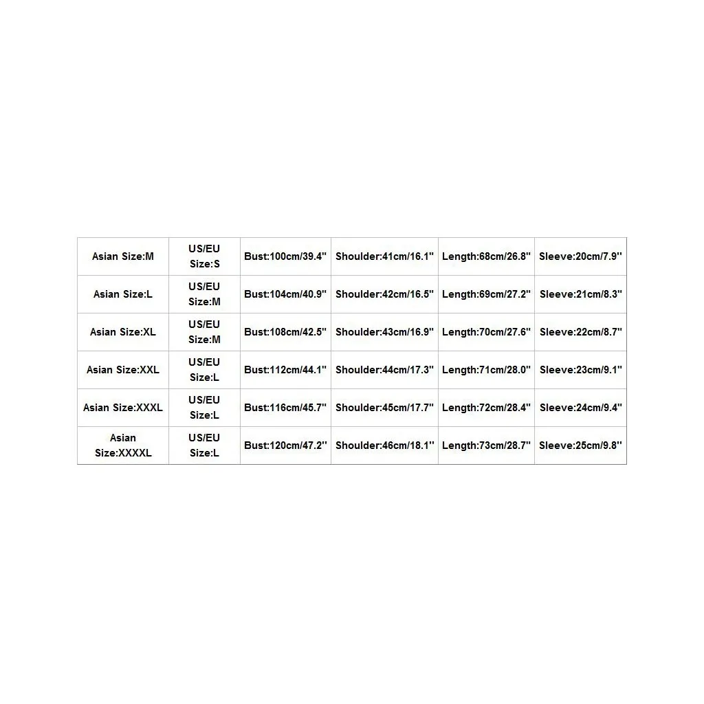 Азиатский размер Размер США/ЕС Бюст Плечо Длина Рукав М S 100 см/39,4" 41 см/16,1" 68 см/26,8" 20 см/7,9'' L М 104 см/40,9" 42 см/16,5" 69 см/27,2" 21 см/8,3" XL М 108 см/42,5" 43 см/16,9" 70 см/27,6" 22 см/8,7" XXL L 112 см/44,1" 44 см/17,3" 71 см/28,0" 23 см/9,1" XХХL L 116 см/45,7" 45 см/17,7" 72 см/28,4 дюйма 24 см/9,4" XXXXL L 120 см/47,2'' 46 см/18,1'' 73 см/28,7" 25 см/9,8''