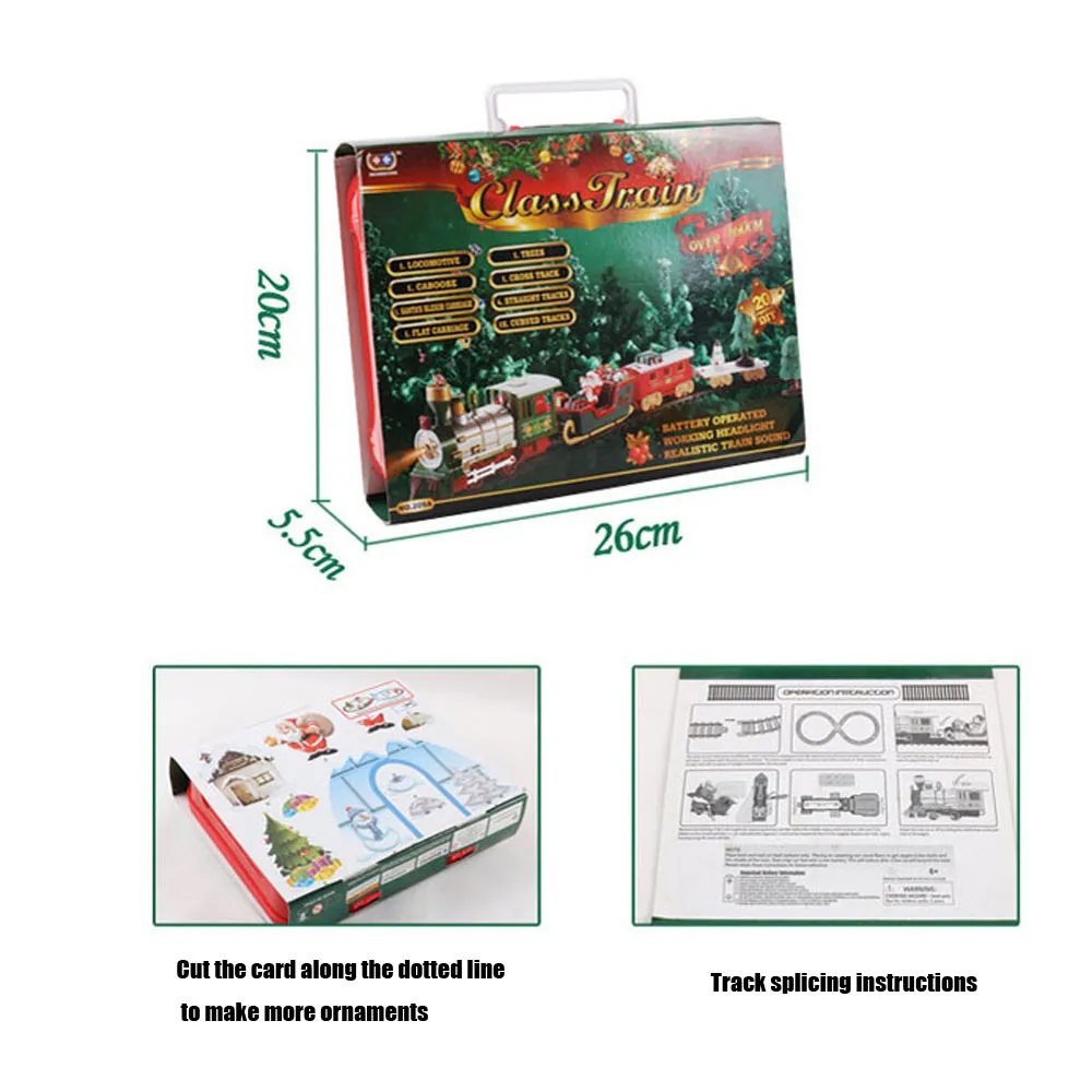【Чудесные рождественские игрушки 】реалистичный звук и освещение делают этот Рождественский поезд необыкновенным во все времена.【Веселитесь с рождественским поездом toys】установите его рельсы-на плоском полу или столе после того, как вы получите Новогодний набор поездов. Убедитесь, что шаги верны, как инструкция. Затем загрузите 4 батареи AA (не входят в комплект) в грузовой автомобиль. Он может ходить очень плавно по дорожке. Если у вас есть какие-либо проблемы, пожалуйста, не стесняйтесь обращаться к нам за помощью в любое время.【Safe & High quality】 наш набор для новогодней елки поезд игрушки изготовлены из прочного материала ABS, он изготовлен с высочайшим качеством, нетоксичный, материалы и части, под строгим контролем качества. Обеспечение веселья и безопасности вашей семьи.【Лучший подарок идеа】 сделать этот день рождения или праздник один, чтобы Запомните. Этот поезд игрушки для малышей и детей является гарантированным хитом для детей в возрасте 3 лет. Это отличный рождественский подарок или подарок на день рождения.Классический поезд набор для праздников Детский Электрический железная дорога Рождественская елка поезд коллекция локомотив поезд набор со звуком и подсветкойС моторизованным двигателем, реалистичными звуковыми эффектами поезда, работающими огнями, этот набор поездов является идеальным стартером для любителей моделей поездов или детей. Используйте все Входящие в комплект железнодорожные дорожки или играйте с формой трека, используя только несколько. Сборка-это кусок торта: треки предназначены для того, чтобы легко защелкиваться вместе, чтобы вы могли настроить и снять в щепотке.Параметры: