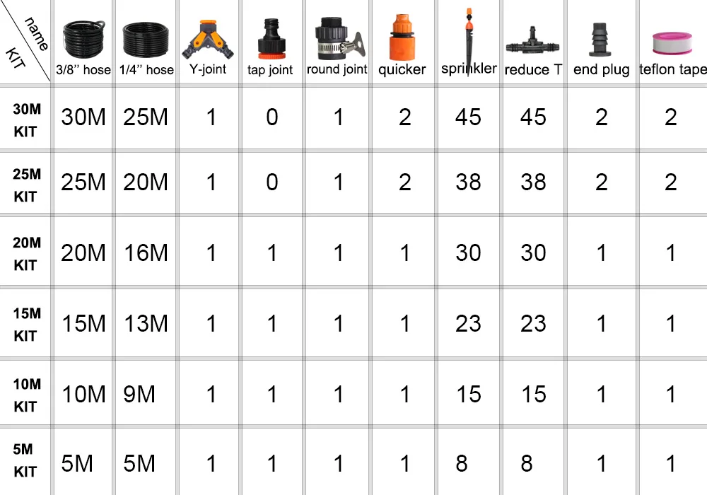 -Этот набор muciakie состоит из шланга 3/8 ''(8 мм ID), ветка 1/4'' (4 мм ID). Убедитесь, что поток воды достаточно. Набор также может быть расширен для размещения вашего растущего ландшафта.