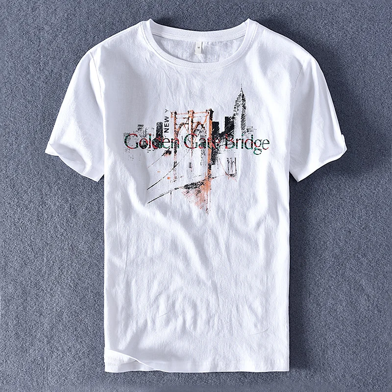 Летняя новая мужская футболка из льна с коротким рукавом с принтом, трендовая футболка, Мужская брендовая футболка с круглым вырезом, Мужская модная повседневная футболка, Мужская футболка, camisa
