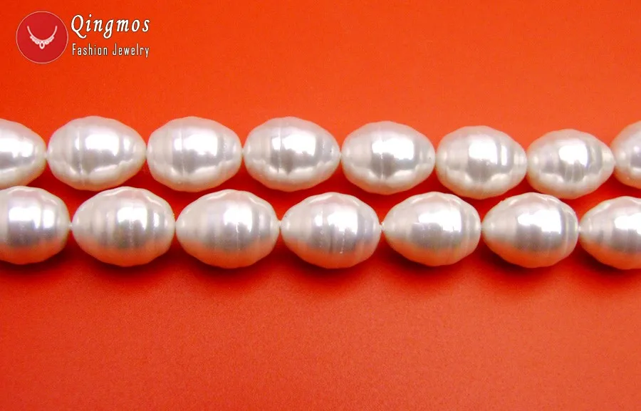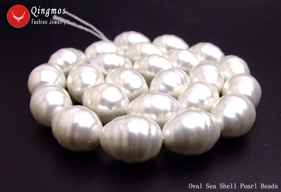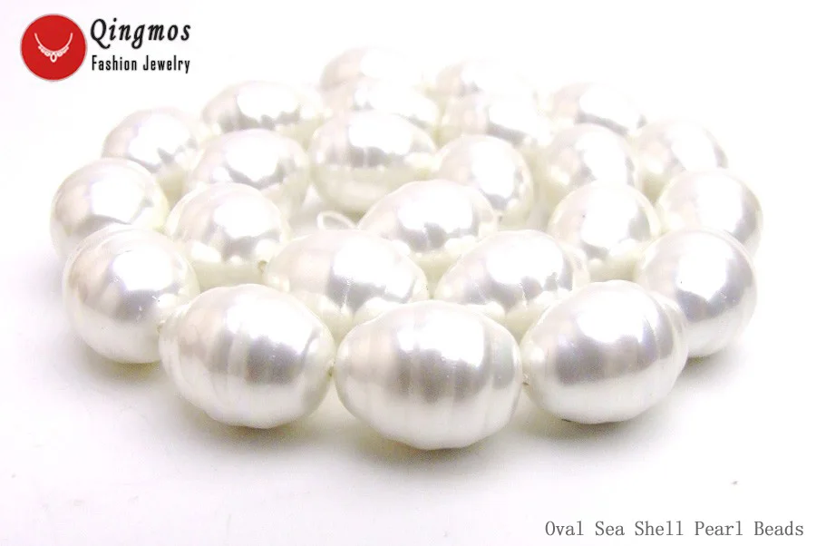 Qingmos блеск13*16 мм ОвальныйБелыйМорские жемчужные бусы в виде раковины для изготовления ювелирных изделий, ожерелье, браслет, серьги, сделай сам, свободные нити, 15 дюймов, los837