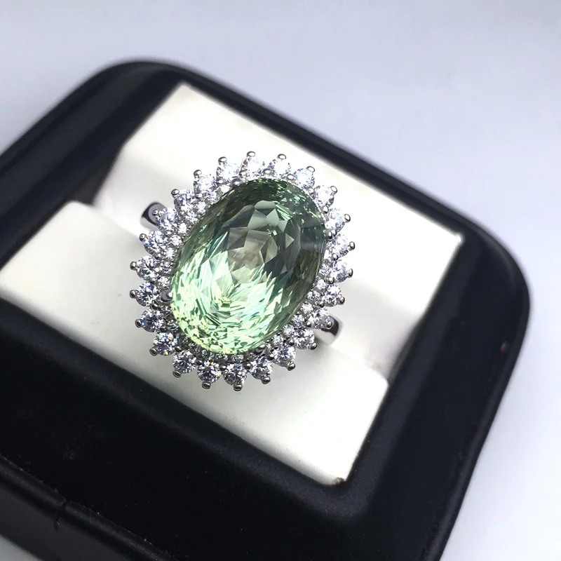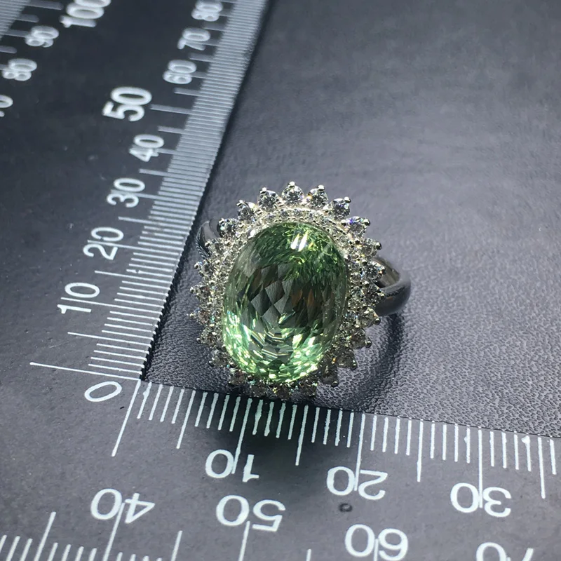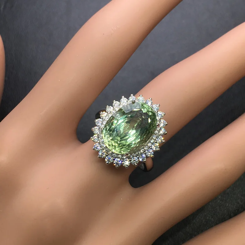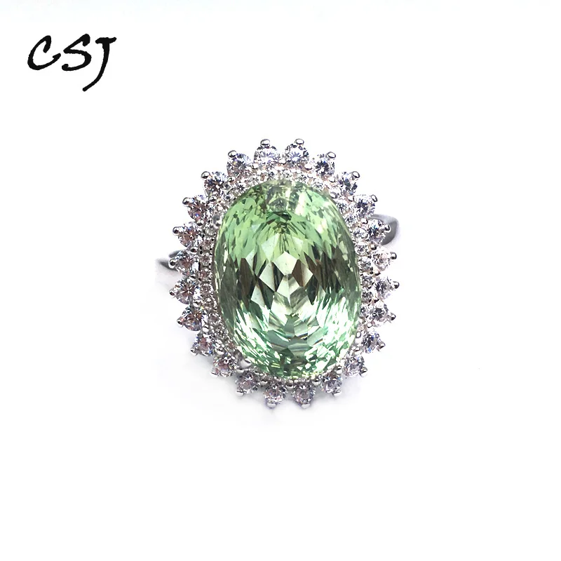 CSJ Зеленый Аметист кварц драгоценный камень элегантное кольцо серебро 925 пробы ювелирные изделия для женщин леди или матери подарочная коробка Основной камень: Зеленый Аметист Размер камня: Овальный 10*14 мм
