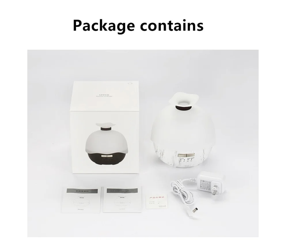 Продукт содержит: аромадиффузор * 1 + адаптер * 1 + руководство на китайском и английском языках * 1