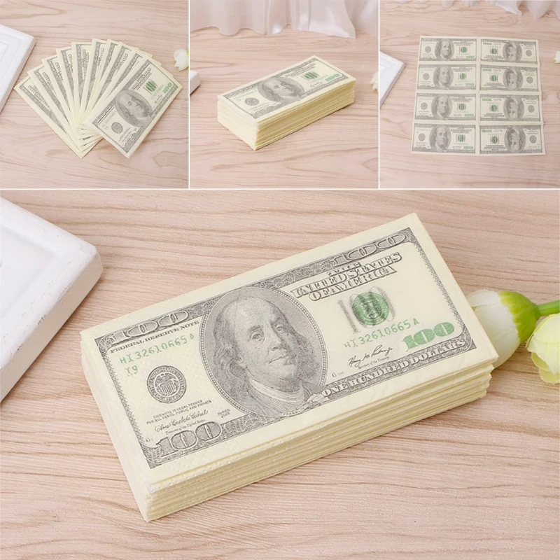 100 $ долларов, салфетка, доллар США, Банкнота, бумажные полотенца, вечерние, хитовые, Подарочные, 9 шт, одноразовые салфетки, свадебные, вечерние, день рождения, украшения